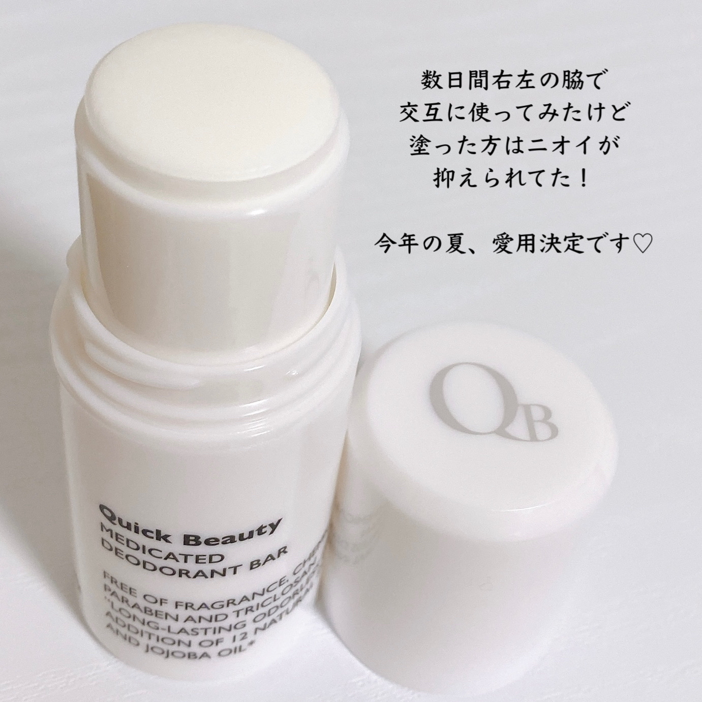 #PR#クイックビューティー@liberta_itemさまからいただきましたクイックビューティー薬用デオドラントバー表面サラサラ、ベタつき香り無くて◎夏本番はクセがないものが使いやすい🥹✨密着力が高く、汗・水・こすれ*に強く手を汚さず使えるス...