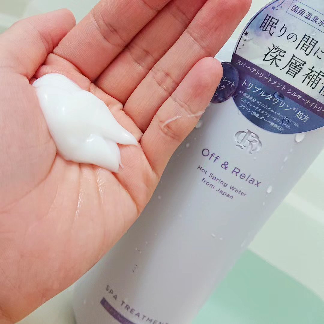 - Off&Relaxシルキーナイトリペアは髪のダメージ補修に特化したシリーズ。出雲・湯原・アルプスの3種の国産温泉水が頭皮と髪の汚れを優しく落とし、特別に配合されたトリプルタウリン※1が髪にハリ・コシを与えます。紫外線やパーマ、ヘアカラーからの髪ダメージを予防するヒートプロテクトテクノロジー※2を採用し、さらに五大保湿成分※3を配合して髪を芯から補修。キューティクルの整ったサロン帰りのような髪へ。オリジナルに調香したバイオレットムスクの香りは、まるで雨上がりの夜の花屋敷から漂う、咲き誇る花々の初々しくも、どこか神秘的で蠱惑的な香りがあなたのバスルームを包み込みます。 ※1ココイルメチルタウリンNa、ココイルメチルタウリンタウリンNa、タウリン※2メドウフォーム-δ- ラクトン配合によるダメージ補修のこと※3ユズセラミド、コエンザイムQ10、トレハロース、ヒアルロン酸、大豆タンパク