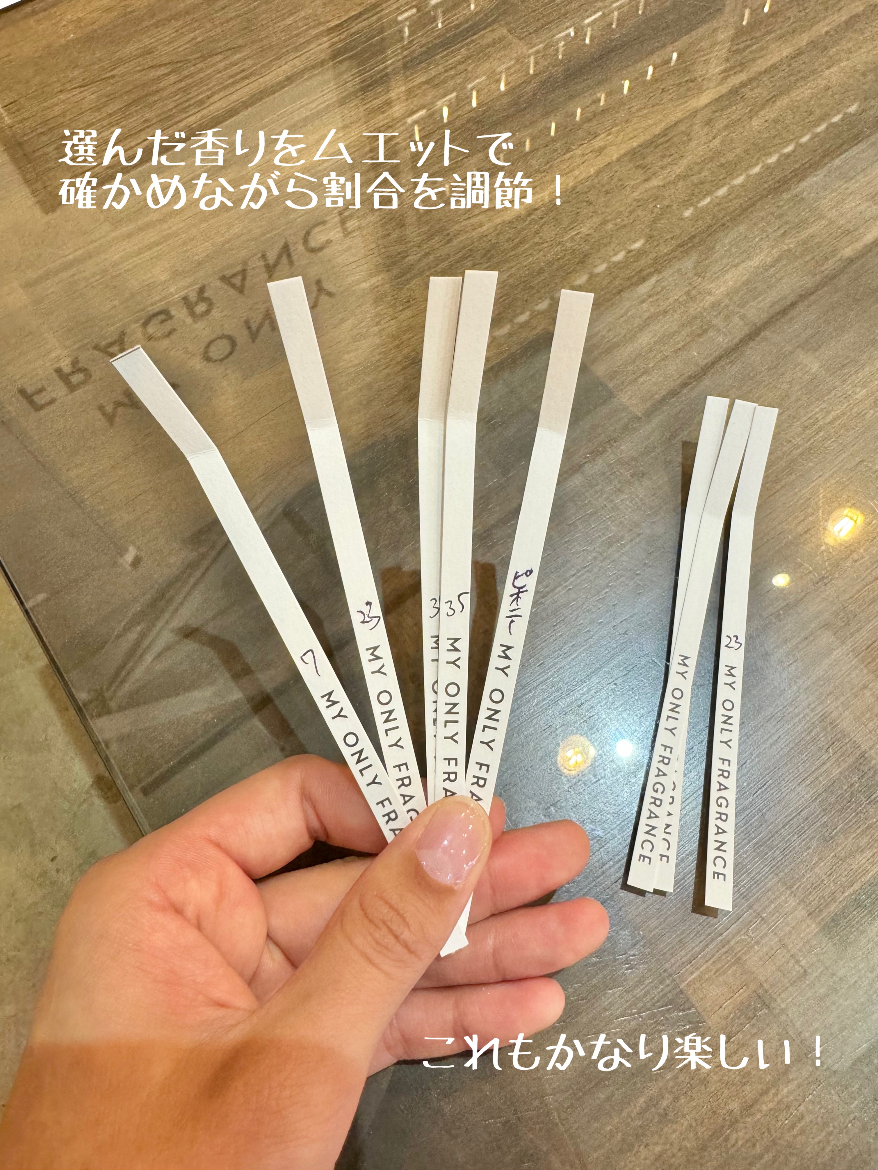 【オリジナル香水作り🫧】Myonlyfragrance🌼1億1043万9652通りもの組み合わせから自分だけのひとつの香りが作れる🫧お友達とLINEで予約して作ってきたよ🔆①何種類かある香りから自分のすきな香りを3~4つ選ぶ(それ以上はプラス...
