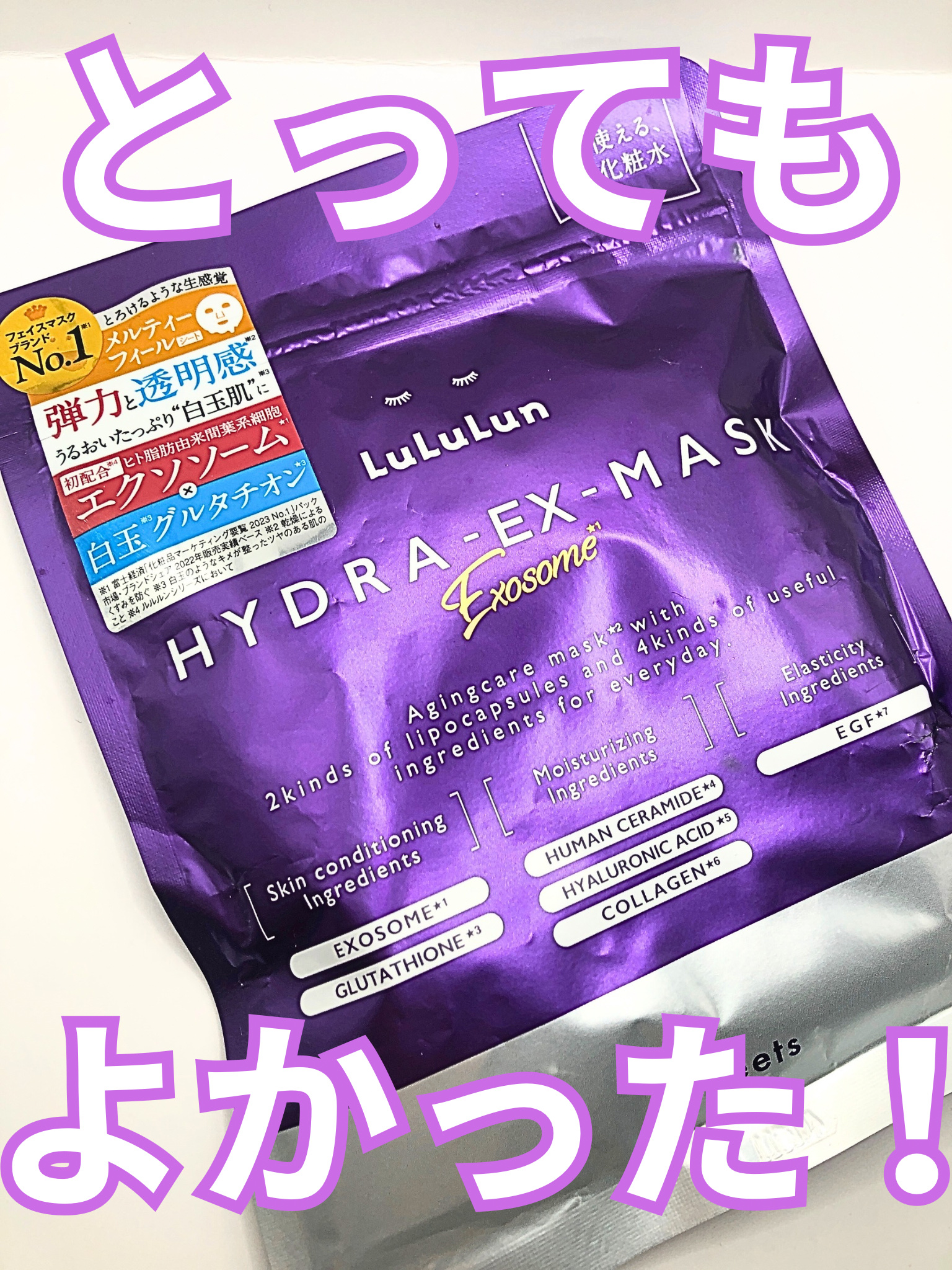- ルルルンハイドラシリーズから新登場。うるおいにプラスするのは、「エクソソーム*1」。先端再生テクノロジーにインスパイアされた、デイリーエイジングケア※1マスクです。白玉※2グルタチオン*2をプラス配合し、弾力・透明感※3・つやめきのあるなめらかなお肌へ導きます。 (*1 整肌成分 ヒト脂肪由来間葉系細胞エクソソーム *2 整肌成分 グルタチオン、アルブチン、レシチン ※1 年齢に応じて肌へうるおいと弾力を与えるケアのこと ※2 白玉のようなキメが整ったツヤのある肌のこと ※3 うるおいを与えて、乾燥によるくすみを防ぐ)