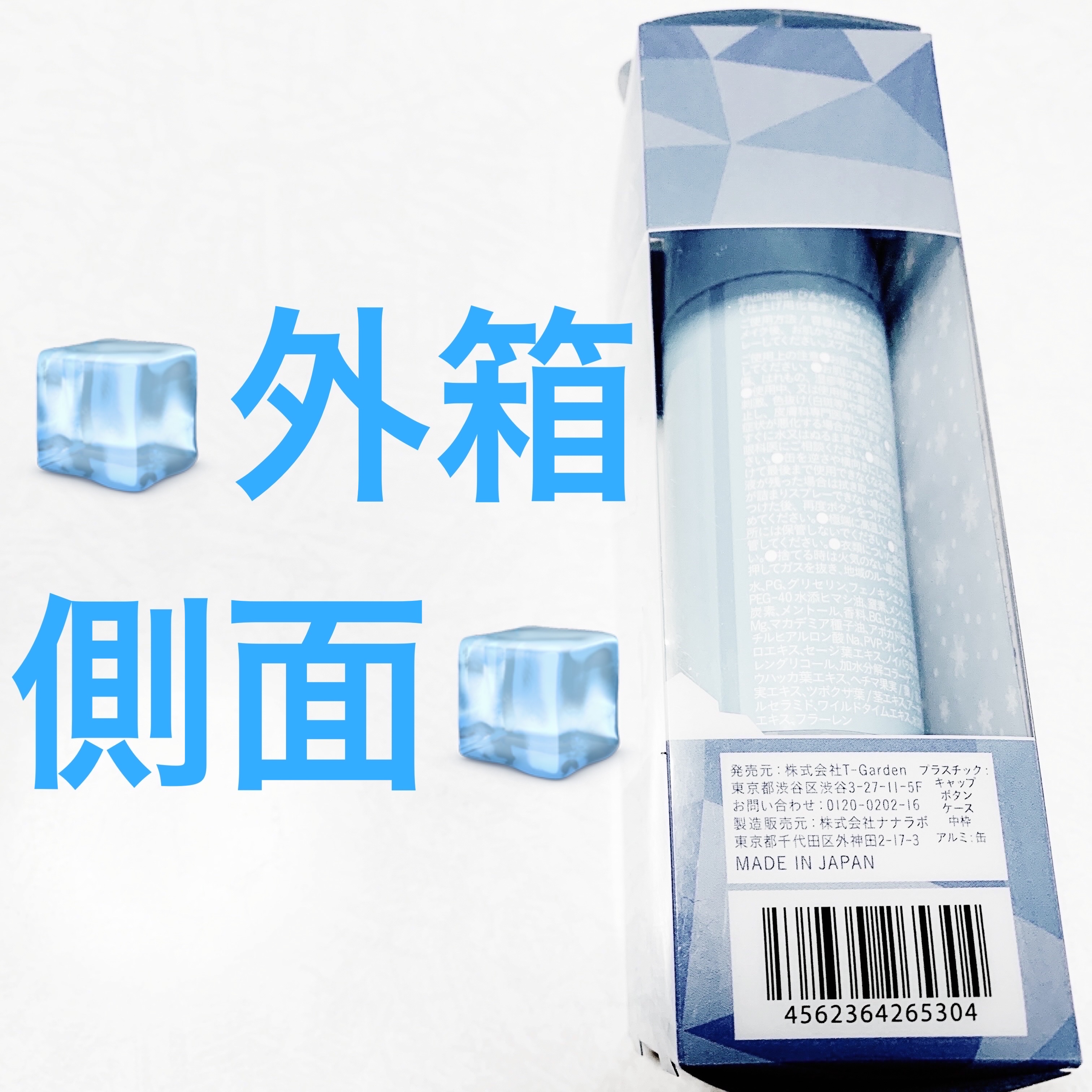 - <ひんやりメイクキープスプレー+> 水、PG、グリセリン、フェノキシエタノール、ポリクオタニウム-56、PEG-40水添ヒマシ油、窒素、メントキシプロパンジオール、二酸化炭素、メントール、香料、BG、ヒアルロン酸Na、リン酸アスコルビルMg、マカデミア種子油、アボカド油、ホホバ種子油、エタノール、アセチルヒアルロン酸Na、PVP、オレイン酸ポリグリセリル-10、ヒメフウロエキス、セージ葉エキス、ノイバラ果実エキス、コメヌカ油、ペンチレングリコール、加水分解コラーゲン、ソメイヨシノ葉エキス、セイヨウハッカ葉エキス、ヘチマ果実/葉/茎エキス、セイヨウサンザシ果実エキス、ツボクサ葉/茎エキス、アーチチョーク葉エキス、グルコシルセラミド、ワイルドタイムエキス、水溶性コラーゲン、キュウリ果実エキス、フラーレン