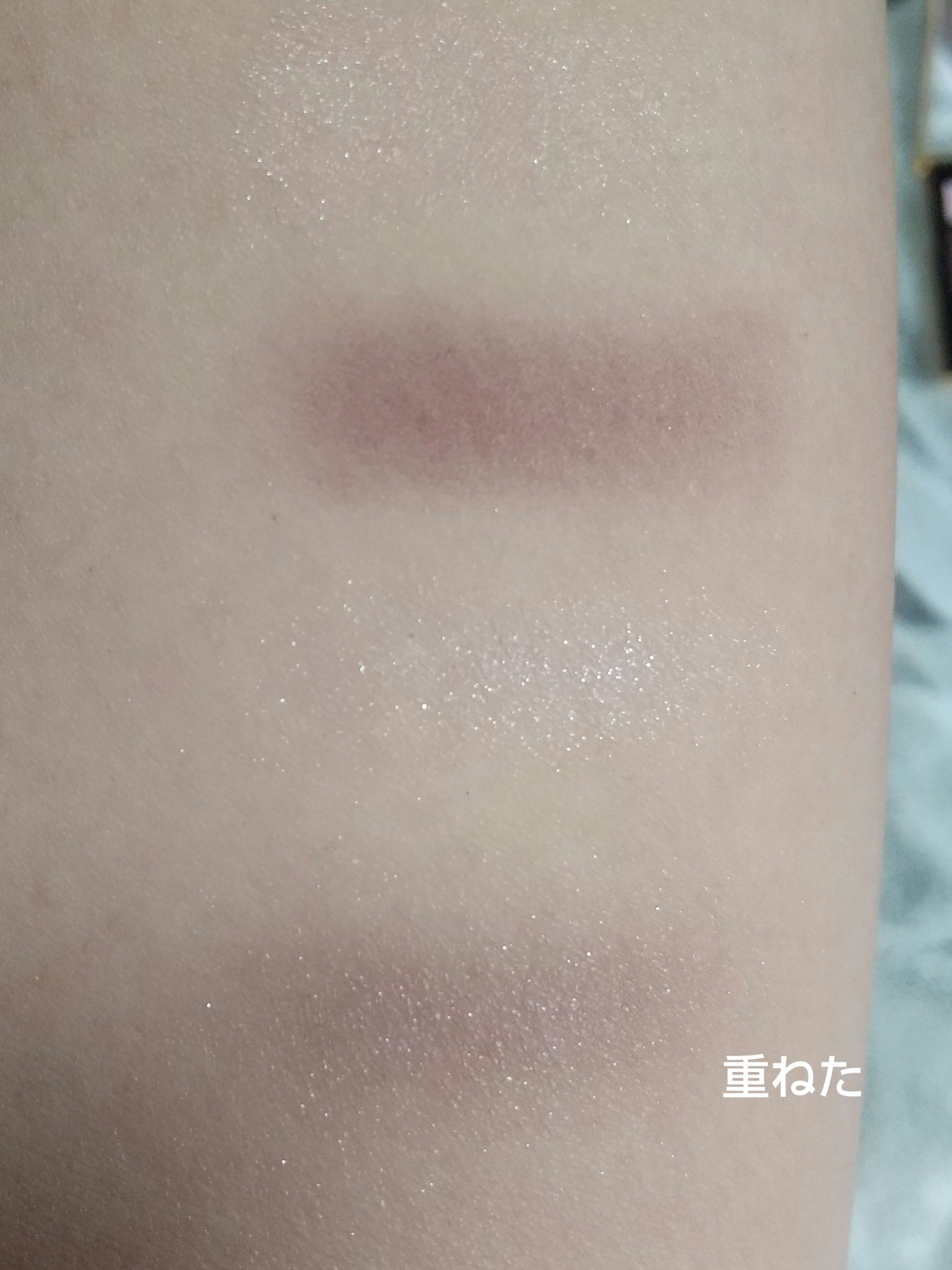 左上、左下、真ん中上、真ん中下、右上、右下という順番でスウォッチしてみました。 出してみると商品の写真より肌にのせたほうがくすみが出るかな✨という印象です😌 伸ばしやすくて指でも筆でもつけやすいです☺️💕 とっても可愛いカラーなのでオススメです💠