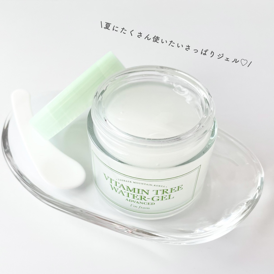 \夏肌レスキュー❣️/アイムフロムの新感覚ジェル登場✨️ビタミンウォータージェルアドバンスド🌿夏の火照り肌に、超さわやかウォータークーリング!天然ビタミン“ビタミンツリー”の生葉水を真空方式でたっぷり抽出✨みずみずしい使用感で、肌をひんやりリ...
