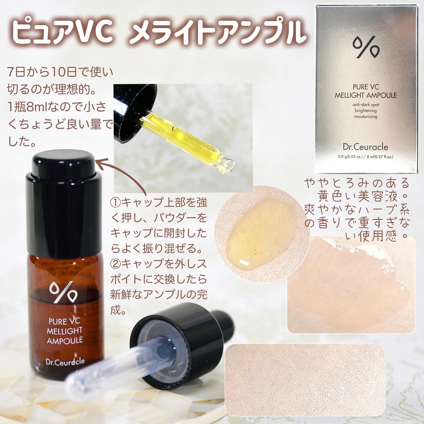 Dr.CeuracleのピュアVCメライトアンプルSETを紹介💁🏼♀️4週間で気になるシミ・くすみを一層1週間の使いきりタイプになっていて4週間で集中ケアピュアビタミンCの力で、肌本来の透明感を実感こんな方におすすめ⭐️シミ・くすみが気にな...