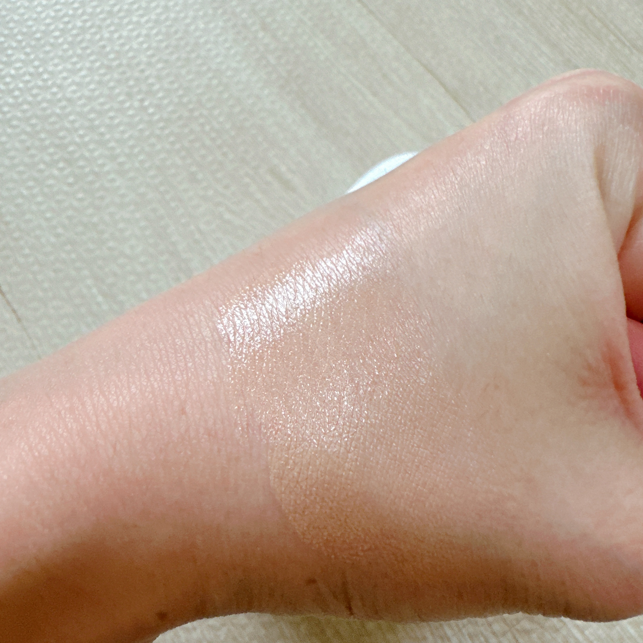 とにかく使い心地がめちゃめちゃよかったです! ピンクベージュは肌に血色感も少し与えて くれてめちゃめちゃよかったです♪ 美容成分が90%以上入っているので 肌への負担が少なそうでよかったです! じわっと血色感を出してくれる感じがめちゃめちゃよかったです♪ 名前の通り鏡などを見なくてもスルスル塗れます。 塗りやすいのとカラーに抜け感があるのがめちゃめちゃよかったです♪
