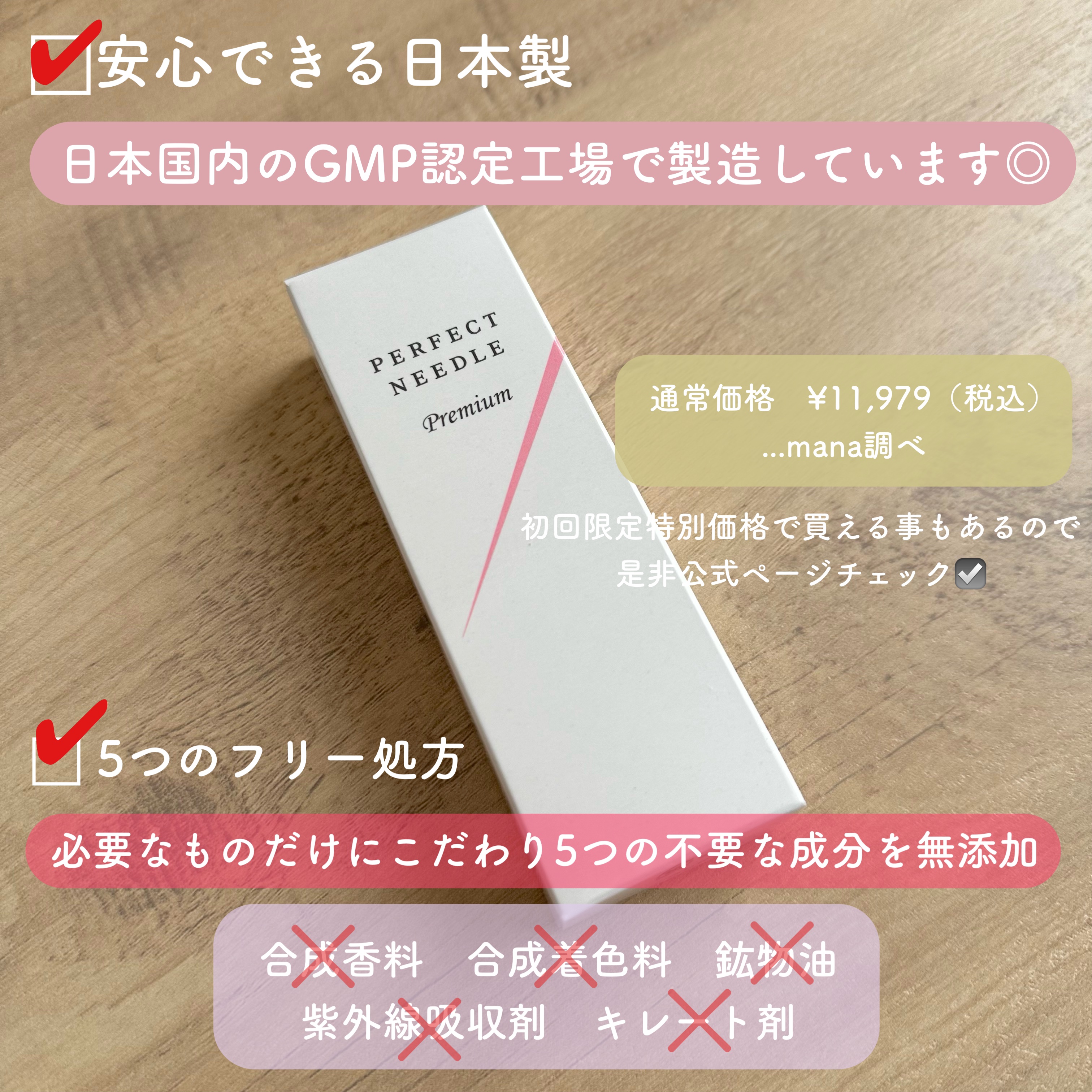 - POINT1.乾燥による小じわを目立ちにくくするジェル乳化処方 みずみずしいジェルの感触で広がり肌になじみやすく、なじんだ後はクリームの保護・保湿感が肌を包み込むジェル乳化処方です。乾燥が気になる素肌になじみやすく、シワのすき間にも美容成分を届けて、年齢に応じたスキンケアを強力にサポートします。化粧品機能評価法ガイドラインに基づく抗しわ効能評価試験を行い、4 週間の連用により乾燥による小じわが目立ちにくくなることを実証しました。 POINT2. 微細な美容針を約 60 万本配合して、角層に速攻アプローチ シリカなどのミネラル成分からできた海綿(かいめん)を微細に加工して、美容針*4 として配合しました。この美容針は、毛髪の 1/10 ほどの太さで、配合量が多すぎるとチクチクとした刺激感が強まり、少なすぎると効果を感じにくくなるため、適度な刺激感になるように商品 1 本 20gあたり約 60 万本の配合量としました。また、不純物が多い美容針原料を配合すると、水分と油分を混ぜる乳化に悪影響を及ぼし品質低下を招くおそれがあるため、パーフェクトニードル プレミアムでは原料を厳選し、さらに不純物を取り除く工程を加えるなど、成分の質と製造方法にもこだわりました。 *4:加水分解カイメン POINT3.ヒト幹細胞由来に加えて、多種多様な美容成分を配合 適度な刺激感を与える美容針*4 に加えて、角層を整えて守る様々な美容成分を厳選しました。特に話題のヒト幹細胞由来成分*5 やレチノール誘導体*2、ナイアシンアミド*3 に加え、バリア機能をサポートするセラミド*7 やサクラン*8、肌をすこやかに保ちながらハリ・ツヤのある素肌へと導くさまざまな保湿成分・整肌成分・ハリサポート成分・バリアサポート成分を配合しています。 *2:パルミチン酸レチノール(整肌成分) *3:整肌成分 *4:加水分解カイメン *5:ヒト脂肪細胞順化培養液エキス (整肌成分)*7:セラミド NP,セラミド AP,セラミド EOP(バリアサポート成分)*8:スイゼンジノリ多糖体(保湿成分)