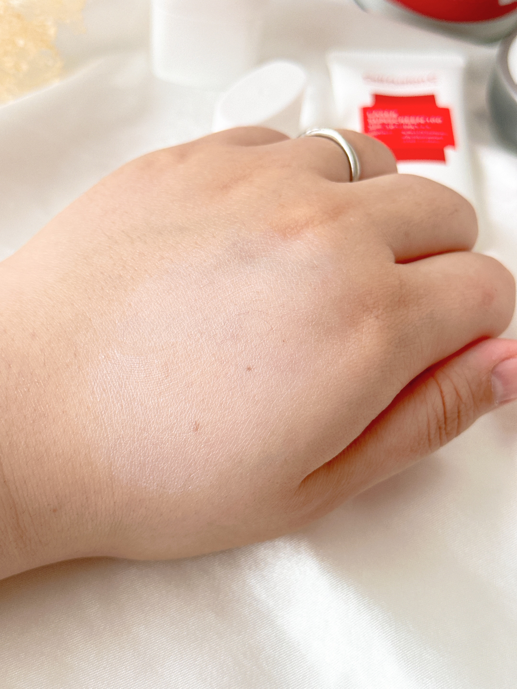 テクスチャーは、柔らかいクリームのように、伸びがよく、ベタつきがなく、テカテカせず、塗った後はサラッとしていていました。 メイクの邪魔にならない仕上がりでした。 香りはほぼ無香なのも嬉しい。さすが、人気のサンスクリーンですね。