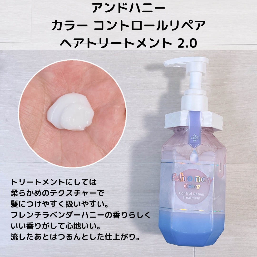 。.ꕤ‿アンドハニーカラーコントロールリペアシャンプー1.0/ヘアトリートメント2.0‿ꕤ.。ヘアカラーキープしながらヘアケアできるシャンプートリートメントです。ボトルがかわいい☪良い香りです!トリートメントが特に好きです♩シャンプーはミュゲ...