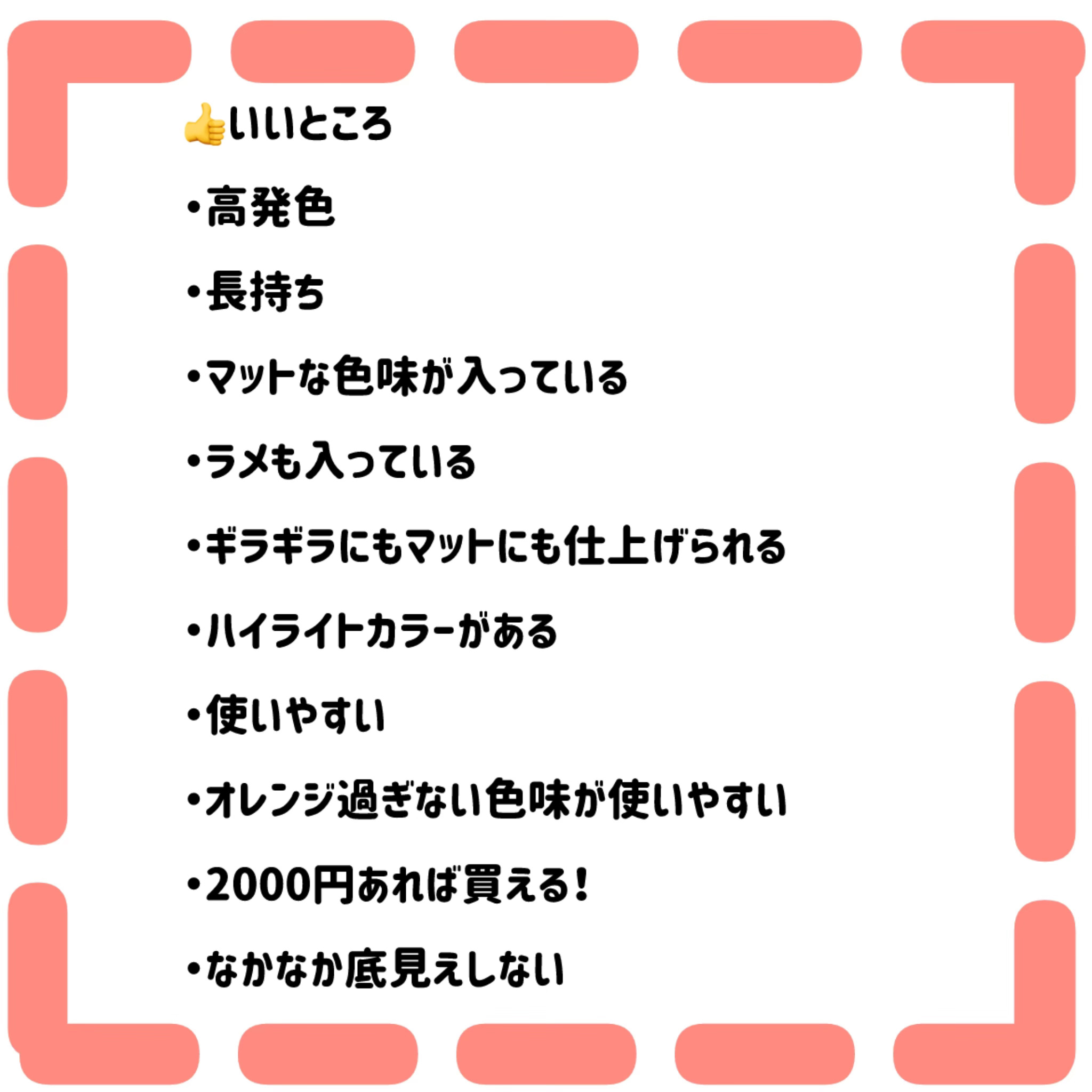 - <08 本気のブラウン> タルク、マイカ、酸化チタン、ホウケイ酸(Ca/チタン)、ホウケイ酸(Ca/Al)、酸化鉄、ポリメタクリル酸メチル、ヘキサ(ヒドロキシステアリン酸/ステアリン酸/ロジン酸)ジペンタエリスリチル、ミリスチン酸Mg、(ジメチコン/ビニルジメチコン)クロスポリマー、ナイロン-12、(フッ化/水酸化/酸化)/(Mg/K/ケイ素)、ラウリン酸ヘキシル、リンゴ酸ジイソステアリル、ステアロイルオキシステアリン酸オクチルドデシル、トリ(カプリル酸/カプリン酸)グリセリル、フェニルトリメチコン、シリカ、窒化ホウ素、ポリプロピレン、ホウケイ酸(Ca/Na)、ラウロイルリシン、ビスジグリセリルポリアシルアジペート-2、ステアリン酸Mg、カプリリルグリコール、ネオペンタン酸イソステアリル、ジメチコン、合成フルオロフロゴパイト、カプリル酸グリセリル、ミリスチン酸イソセチル、グンジョウ、銀、エチルヘキシルグリセリン、水酸化Al、トリエトキシカプリリルシラン、水添レシチン、酸化スズ、ハイドロゲンジメチコン、赤226、水、塩化Na、トコフェロール、硫酸Na <09 再会のピンク> タルク、マイカ、酸化チタン、ホウケイ酸(Ca/チタン)、ラウリン酸ヘキシル、リンゴ酸ジイソステアリル、フェニルトリメチコン、ミリスチン酸Mg、ナイロン-12、酸化鉄、ホウケイ酸(Ca/Al)、ステアロイルオキシステアリン酸オクチルドデシル、ヘキサ(ヒドロキシステアリン酸/ステアリン酸/ロジン酸)ジペンタエリスリチル、ポリメタクリル酸メチル、ビスジグリセリルポリアシルアジペート-2、ポリプロピレン、合成フルオロフロゴパイト、シリカ、ステアリン酸Mg、トリ(カプリル酸/カプリン酸)グリセリル、ポリメチルシルセスキオキサン、ネオペンタン酸イソステアリル、ジメチコン、カプリリルグリコール、トリエトキシカプリリルシラン、カプリル酸グリセリル、(ジメチコン/ビニルジメチコン)クロスポリマー、エチルヘキシルグリセリン、グンジョウ、赤226、水酸化Al、酸化スズ、カルミン、水、塩化Na、硫酸Na、トコフェロール <103 ハッピーエディション【新】> タルク、マイカ、ホウケイ酸(Ca/チタン)、酸化チタン、合成フルオロフロゴパイト、ジメチコン、トリ(カプリル酸/カプリン酸)グリセリル、ポリプロピレン、ポリメタクリル酸メチル、ジフェニルシロキシフェニルトリメチコン、酸化鉄、ヘキサ(ヒドロキシステアリン酸/ステアリン酸/ロジン酸)ジペンタエリスリチル、ビスジグリセリルポリアシルアジペート-2、リンゴ酸ジイソステアリル、ミリスチン酸Mg、(ジメチコン/ビニルジメチコン)クロスポリマー、ダイマージリノール酸(フィトステリル/イソステアリル/セチル/ステアリル/ベヘニル)、フェニルトリメチコン、ダイマージリノール酸ダイマージリノレイルビス(ベヘニル/イソステアリル/フィトステリル)、ジヘプタン酸ネオペンチルグリコール、ホウケイ酸(Ca/Al)、ジエチルヘキサン酸ネオペンチルグリコール、ラウリン酸ヘキシル、ポリイソブテン、ポリメチルシルセスキオキサン、カプリリルグリコール、ポリエチレン、ラウロイルリシン、カプリル酸グリセリル、ステアロイルオキシステアリン酸オクチルドデシル、エチルヘキシルグリセリン、ミリスチン酸イソセチル、酸化スズ、グンジョウ、スオウ樹皮エキス、トリエトキシカプリリルシラン、水添レシチン、カルミン、水酸化Al、赤226、水、トコフェロール、塩化Na、硫酸Na、コチニール等(カルミン) <104 ときめきのポッピンラメ【新】> ホウケイ酸(Ca/Al)、マイカ、タルク、ジヘプタン酸ネオペンチルグリコール、ポリイソブテン、リンゴ酸ジイソ ステアリル、ホウケイ酸(Ca/チタン)、酸化チタン、ポリプロピレン、シリカ、ヘキサ(ヒドロキシステアリン酸/ ステアリン酸/ロジン酸)ジペンタエリスリチル、(ジメチコン/ビニルジメチコン)クロスポリマー、ポリエチレン、酸化鉄、ホウケイ酸(Ca/Na)、合成フルオロフロゴパイト、ポリメタクリル酸メチル、トリ(カプリル酸/カプリ ン酸)グリセリル、ミリスチン酸Mg、ダイマージリノール酸(フィトステリル/イソステアリル/セチル/ステアリ ル/ベヘニル)、ビスジグリセリルポリアシルアジペート-2、カプリリルグリコール、カプリル酸グリセリル、銀、酸化スズ、エチルヘキシルグリセリン、赤226、硫酸Ba、トリエトキシカプリリルシラン、トコフェロール