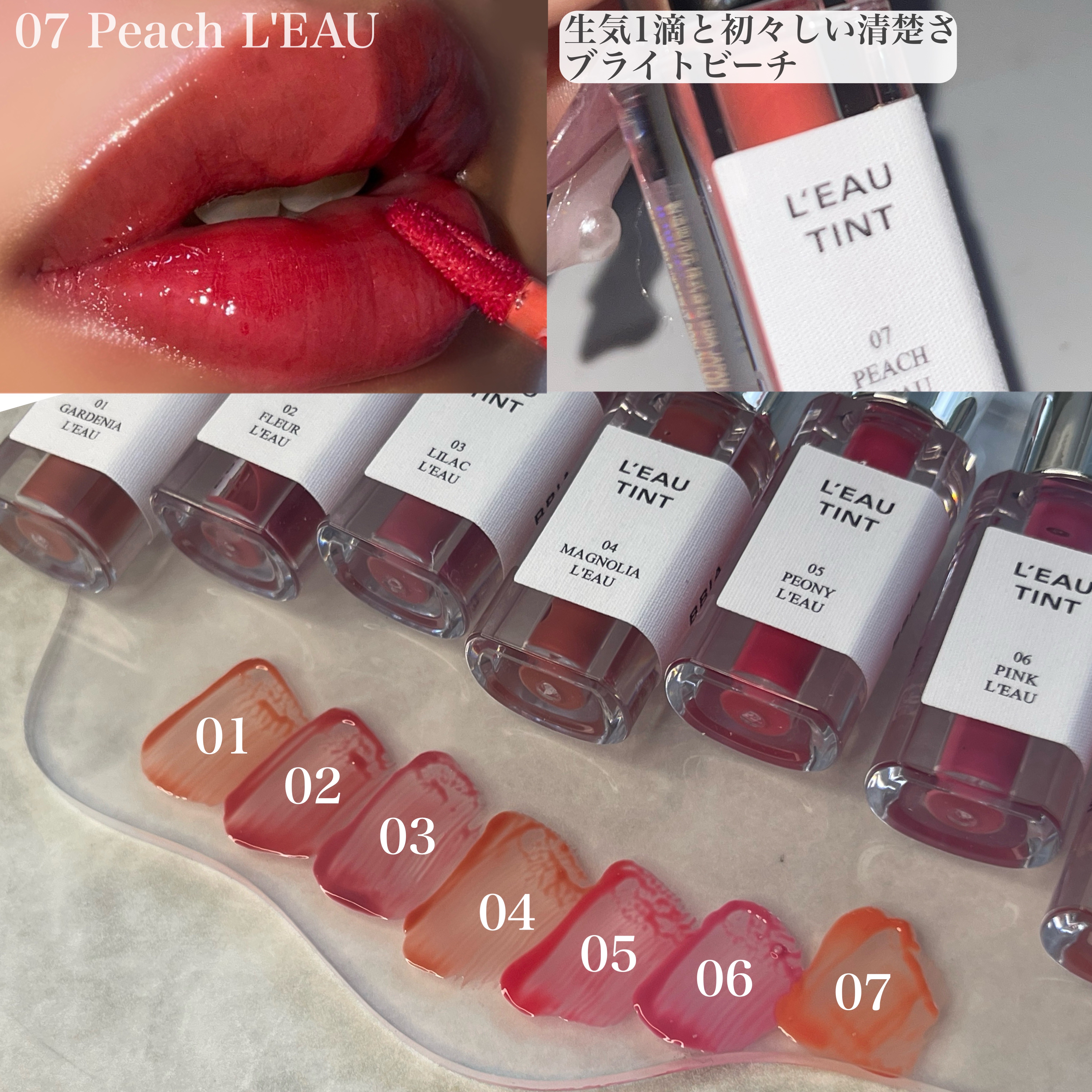 - <01 ガーデニア・ロー> 水、ジフェニルジメチコン、ビスジグリセリルポリアシルアジペート-2、リンゴ酸ジイソステアリル、グリセリン、DPG、セチルPEG/PPG-10/1ジメチコン、1,2-ヘキサンジオール、ポリソルベート60、イソステアリン酸ソルビタン、(アクリル酸ヒドロキシエチル/アクリロイルジメチルタウリンNa)コポリマー、セテアレス-20、スクワラン、酸化チタン、黄5、香料、エチルヘキシルグリセリン、赤227、青1、BG、ヤマザクラ花エキス、モクレン花エキス、ハス花エキス、ダマスクバラ花エキス、クエン酸Na、テトラ(ジ-t-ブチルヒドロキシヒドロケイヒ酸)ペンタエリスリチル、クエン酸、フェノキシエタノール <02 フルール・ロー> 水、ジフェニルジメチコン、ビスジグリセリルポリアシルアジペート-2、リンゴ酸ジイソステアリル、グリセリン、DPG、セチルPEG/PPG-10/1ジメチコン、1,2-ヘキサンジオール、ポリソルベート60、イソステアリン酸ソルビタン、(アクリル酸ヒドロキシエチル/アクリロイルジメチルタウリンNa)コポリマー、セテアレス-20、スクワラン、酸化チタン、香料、エチルヘキシルグリセリン、赤227、黄4、黄5、赤104(1)、青1、BG、ヤマザクラ花エキス、モクレン花エキス、ハス花エキス、ダマスクバラ花エキス、クエン酸Na、テトラ(ジ-t-ブチルヒドロキシヒドロケイヒ酸)ペンタエリスリチル、クエン酸、フェノキシエタノール <03 ライラック・ロー> 水、ジフェニルジメチコン、ビスジグリセリルポリアシルアジペート-2、リンゴ酸ジイソステアリル、グリセリン、DPG、セチルPEG/PPG-10/1ジメチコン、1,2-ヘキサンジオール、ポリソルベート60、イソステアリン酸ソルビタン、(アクリル酸ヒドロキシエチル/アクリロイルジメチルタウリンNa)コポリマー、セテアレス-20、スクワラン、酸化チタン、香料、エチルヘキシルグリセリン、赤227、黄5、青1、BG、ヤマザクラ花エキス、モクレン花エキス、ハス花エキス、ダマスクバラ花エキス、クエン酸Na、テトラ(ジ-t-ブチルヒドロキシヒドロケイヒ酸)ペンタエリスリチル、クエン酸、フェノキシエタノール <04 マグノリア・ロー> 水、ジフェニルジメチコン、ビスジグリセリルポリアシルアジペート-2、リンゴ酸ジイソステアリル、グリセリン、DPG、セチルPEG/PPG-10/1ジメチコン、1,2-ヘキサンジオール、ポリソルベート60、イソステアリン酸ソルビタン、(アクリル酸ヒドロキシエチル/アクリロイルジメチルタウリンNa)コポリマー、セテアレス-20、スクワラン、酸化チタン、香料、エチルヘキシルグリセリン、赤227、黄4、黄5、青1、BG、ヤマザクラ花エキス、モクレン花エキス、ハス花エキス、ダマスクバラ花エキス、クエン酸Na、テトラ(ジ-t-ブチルヒドロキシヒドロケイヒ酸)ペンタエリスリチル、クエン酸、フェノキシエタノール <05 ピオニー・ロー> 水、ジフェニルジメチコン、ビスジグリセリルポリアシルアジペート-2、リンゴ酸ジイソステアリル、グリセリン、DPG、セチルPEG/PPG-10/1ジメチコン、1,2-ヘキサンジオール、ポリソルベート60、イソステアリン酸ソルビタン、(アクリル酸ヒドロキシエチル/アクリロイルジメチルタウリンNa)コポリマー、セテアレス-20、スクワラン、香料、エチルヘキシルグリセリン、黄5、赤227、赤104(1)、BG、ヤマザクラ花エキス、モクレン花エキス、ハス花エキス、ダマスクバラ花エキス、クエン酸Na、テトラ(ジ-t-ブチルヒドロキシヒドロケイヒ酸)ペンタエリスリチル、クエン酸、フェノキシエタノール <06 ピンク・ロー> 水、ジフェニルジメチコン、ビスジグリセリルポリアシルアジペート-2、リンゴ酸ジイソステアリル、グリセリン、DPG、セチルPEG/PPG-10/1ジメチコン、1,2-ヘキサンジオール、ポリソルベート60、イソステアリン酸ソルビタン、(アクリル酸ヒドロキシエチル/アクリロイルジメチルタウリンNa)コポリマー、セテアレス-20、スクワラン、酸化チタン、香料、エチルヘキシルグリセリン、黄5、赤104(1)、赤227、青1、BG、ヤマザクラ花エキス、モクレン花エキス、ハス花エキス、ダマスクバラ花エキス、クエン酸Na、テトラ(ジ-t-ブチルヒドロキシヒドロケイヒ酸)ペンタエリスリチル、クエン酸、フェノキシエタノール <07 ピーチ・ロー> 水、ジフェニルジメチコン、ビスジグリセリルポリアシルアジペート-2、リンゴ酸ジイソステアリル、グリセリン、DPG、セチルPEG/PPG-10/1ジメチコン、1,2-ヘキサンジオール、ポリソルベート60、イソステアリン酸ソルビタン、(アクリル酸ヒドロキシエチル/アクリロイルジメチルタウリンNa)コポリマー、セテアレス-20、スクワラン、酸化チタン、香料、エチルヘキシルグリセリン、黄4、赤227、黄5、赤104(1)、BG、ヤマザクラ花エキス、モクレン花エキス、ハス花エキス、ダマスクバラ花エキス、クエン酸Na、テトラ(ジ-t-ブチルヒドロキシヒドロケイヒ酸)ペンタエリスリチル、クエン酸、フェノキシエタノール <08 スイート・ロー> 水、ジフェニルジメチコン、ビスジグリセリルポリアシルアジペート-2、リンゴ酸ジイソステア