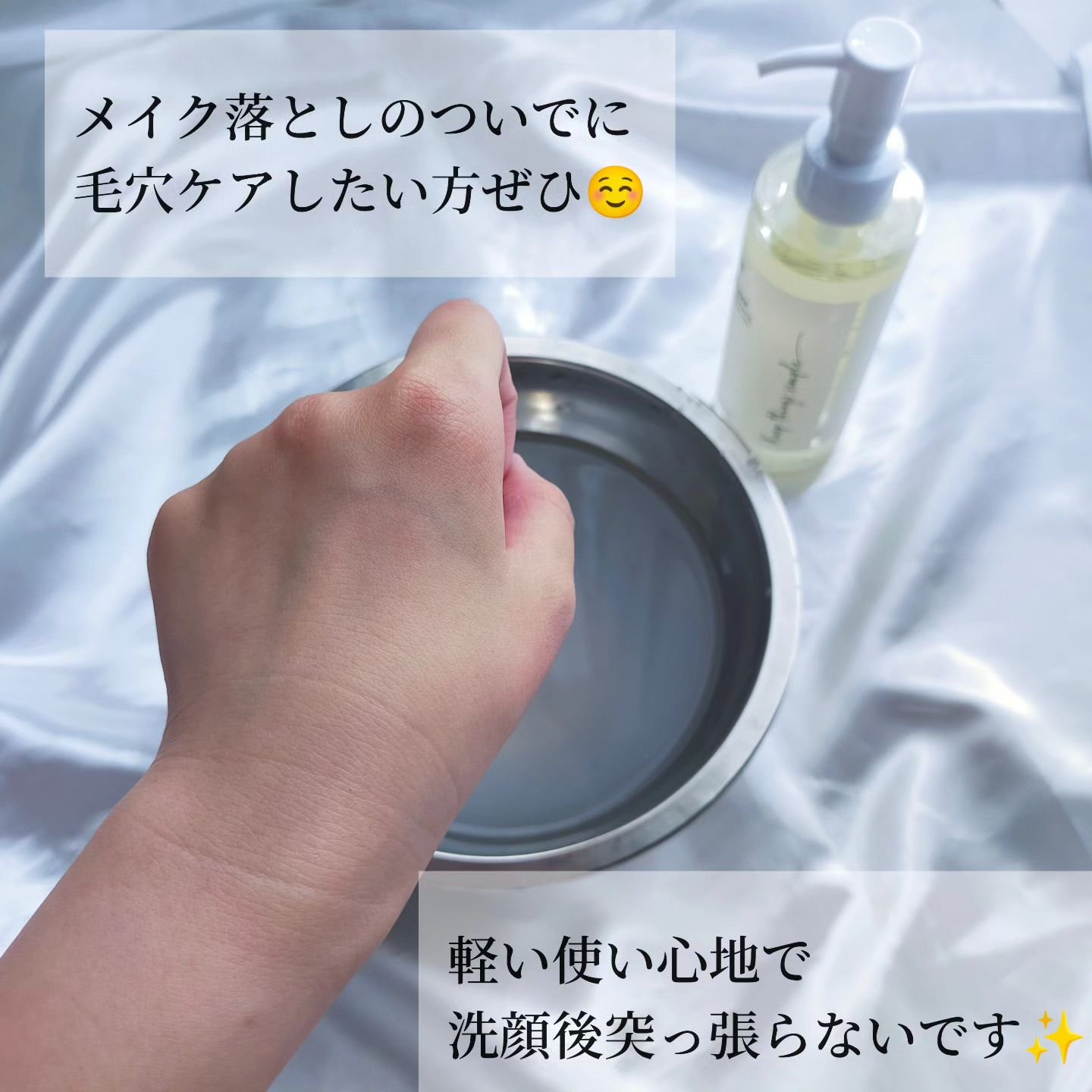 思っていたよりサラサラめのテクスチャーで最近こってりとろとろのクレンジングやバームばっかり使っていたので新鮮な気持ち! メイクを落としてくれるだけじゃなく、毛穴まで入り込んで汚れを落としてくれてる感がすごい。体感だけど。 しっかり乳化して流すとオイルクレンジング特有のぬるっとした洗い上がりもなく、かといってつっぱり感も少なくてめちゃ良い💯