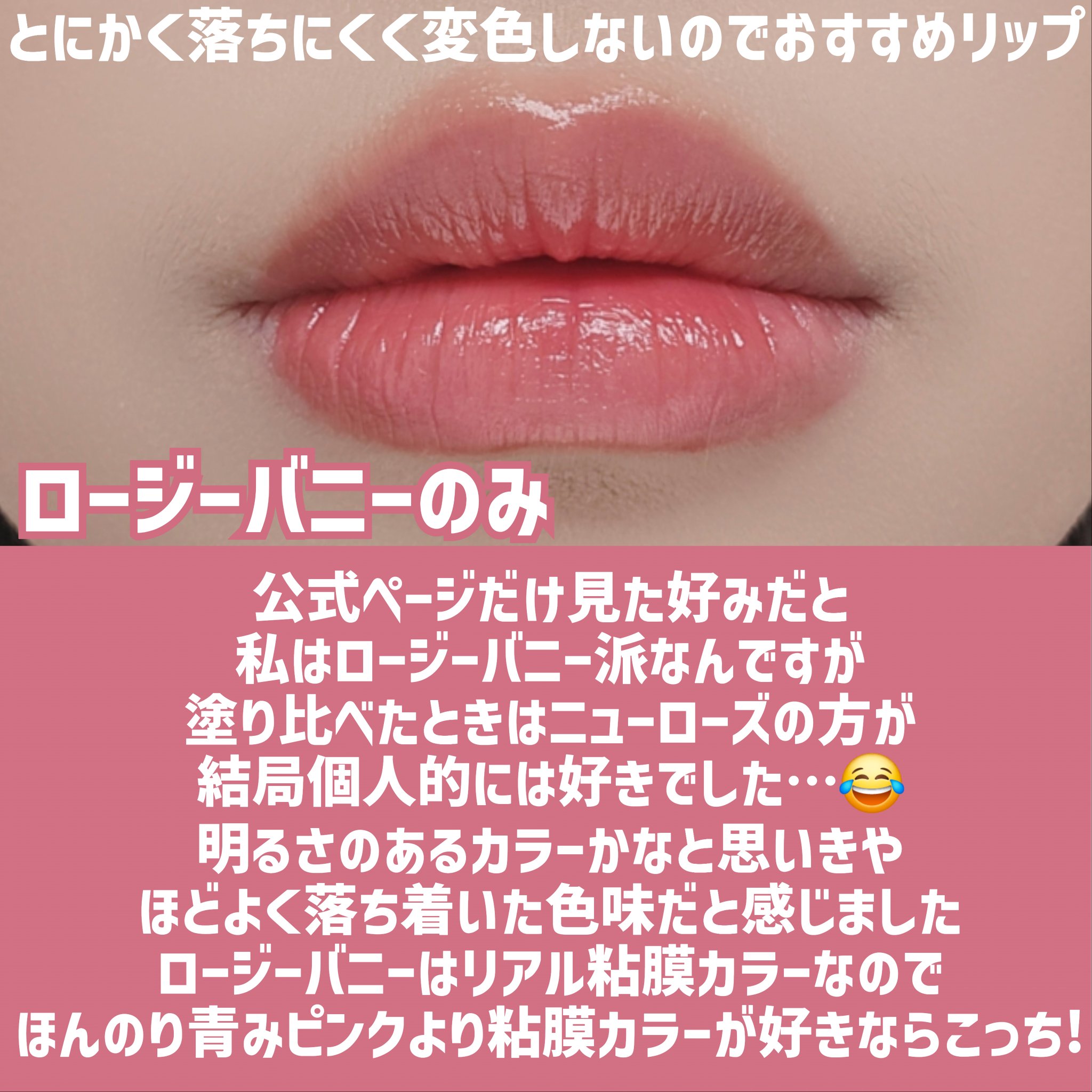 - <01 ヴィヴィディ(Vividy)【EC展開カラー】> ペンタイソステアリン酸ジペンタエリスリチル、トリ(カプリル酸/カプリン酸)グリセリル、ラウロイルグルタミン酸ジ(フィトステリル/オクチルドデシル)、オクチルドデカノール、グリセリルウンデシルジメチコン、ジフェニルジメチコン、合成ワックス、ダイマージリノール酸(フィトステリル/イソステアリル/セチル/ステアリル/ベヘニル)、トリイソステアリン酸ポリグリセリル-2、(アクリレーツ/アクリル酸ステアリル/メタクリル酸ジメチコン)コポリマー、ラウリルポリグリセリル-3ポリジメチルシロキシエチルジメチコン、(エチレン/プロピレン)コポリマー、ジメチコン、ポリヒドロキシステアリン酸、香料、レシチン、パルミチン酸エチルヘキシル、イソステアリン酸、ミリスチン酸イソプロピル、ポリリシノレイン酸ポリグリセリル-3、水酸化Al、トリエトキシカプリリルシラン、トコフェロール、赤226、黄5、赤104(1)、酸化チタン、赤201 <02 ベリーコア(Berry Core)> ペンタイソステアリン酸ジペンタエリスリチル、トリ(カプリル酸/カプリン酸)グリセリル、オクチルドデカノール、ラウロイルグルタミン酸ジ(フィトステリル/オクチルドデシル)、グリセリルウンデシルジメチコン、ジフェニルジメチコン、合成ワックス、ダイマージリノール酸(フィトステリル/イソステアリル/セチル/ステアリル/ベヘニル)、トリイソステアリン酸ポリグリセリル-2、(アクリレーツ/アクリル酸ステアリル/メタクリル酸ジメチコン)コポリマー、ラウリルポリグリセリル-3ポリジメチルシロキシエチルジメチコン、(エチレン/プロピレン)コポリマー、ジメチコン、香料、トコフェロール、赤202、赤201、黄5、酸化鉄 <03 クランベリー(Cranberry)【EC展開カラー】> ペンタイソステアリン酸ジペンタエリスリチル、オクチルドデカノール、トリ(カプリル酸/カプリン酸)グリセリル、ラウロイルグルタミン酸ジ(フィトステリル/オクチルドデシル)、グリセリルウンデシルジメチコン、ジフェニルジメチコン、合成ワックス、ダイマージリノール酸(フィトステリル/イソステアリル/セチル/ステアリル/ベヘニル)、トリイソステアリン酸ポリグリセリル-2、(アクリレーツ/アクリル酸ステアリル/メタクリル酸ジメチコン)コポリマー、ラウリルポリグリセリル-3ポリジメチルシロキシエチルジメチコン、(エチレン/プロピレン)コポリマー、ジメチコン、香料、リンゴ酸ジイソステアリル、トコフェロール、ポリヒドロキシステアリン酸、レシチン、トリエトキシカプリリルシラン、パルミチン酸エチルヘキシル、イソステアリン酸、ミリスチン酸イソプロピル、ポリリシノレイン酸ポリグリセリル-3、酸化鉄、黄5、赤202、赤230(1) <04 ヘイベスティ(Hey Bestie)【EC展開カラー】> ペンタイソステアリン酸ジペンタエリスリチル、トリ(カプリル酸/カプリン酸)グリセリル、ラウロイルグルタミン酸ジ(フィトステリル/オクチルドデシル)、オクチルドデカノール、ジフェニルジメチコン、グリセリルウンデシルジメチコン、合成ワックス、ダイマージリノール酸(フィトステリル/イソステアリル/セチル/ステアリル/ベヘニル)、トリイソステアリン酸ポリグリセリル-2、ラウリルポリグリセリル-3ポリジメチルシロキシエチルジメチコン、(アクリレーツ/アクリル酸ステアリル/メタクリル酸ジメチコン)コポリマー、ポリヒドロキシステアリン酸、(エチレン/プロピレン)コポリマー、ジメチコン、レシチン、香料、パルミチン酸エチルヘキシル、イソステアリン酸、ミリスチン酸イソプロピル、ポリリシノレイン酸ポリグリセリル-3、水酸化Al、トリエトキシカプリリルシラン、トコフェロール、酸化チタン、赤202、黄5、赤104(1)、酸化鉄、青1 <05 ブルーベリー(Blueberry)> ペンタイソステアリン酸ジペンタエリスリチル、トリ(カプリル酸/カプリン酸)グリセリル、ラウロイルグルタミン酸ジ(フィトステリル/オクチルドデシル)、オクチルドデカノール、グリセリルウンデシルジメチコン、ジフェニルジメチコン、合成ワックス、ダイマージリノール酸(フィトステリル/イソステアリル/セチル/ステアリル/ベヘニル)、トリイソステアリン酸ポリグリセリル-2、ラウリルポリグリセリル-3ポリジメチルシロキシエチルジメチコン、(アクリレーツ/アクリル酸ステアリル/メタクリル酸ジメチコン)コポリマー、(エチレン/プロピレン)コポリマー、ジメチコン、香料、水酸化Al、トリエトキシカプリリルシラン、トコフェロール、酸化チタン、酸化鉄、赤202、青1、赤104(1) <06 ニューローズ(New Rose)> ペンタイソステアリン酸ジペンタエリスリチル、トリ(カプリル酸/カプリン酸)グリセリル、ラウロイルグルタミン酸ジ(フィトステリル/オクチルドデシル)、オクチルドデカノール、ジフェニルジメチコン、グリセリルウンデシルジメチコン、合成ワックス、ダイマージリノール酸(フィトステリル/イソステアリル/セチル/ステアリル/ベヘニル)、トリイソステアリン酸ポリグリ
