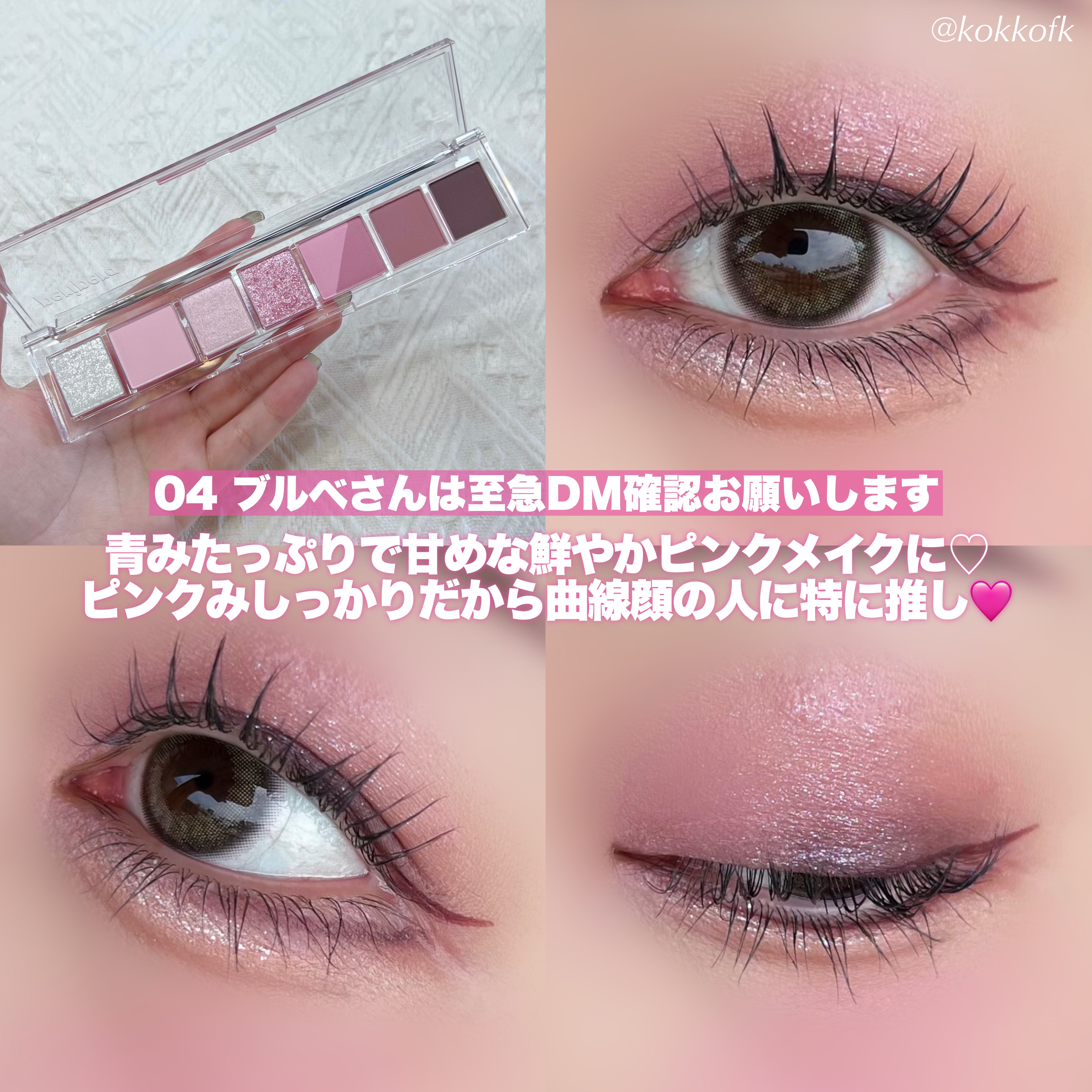 rom&nd────────────ベターザンパレット06 PEONY NUDE GARDEN (¥2900) rom&nd────────────ベターザンアイズ W03 Dry Strawberry (¥1569) HOLIKA HOLIKA────────────マイフェブムードアイパレットMOONY (¥2050) HOLIKA HOLIKA────────────マイフェブムードアイパレットPINK OLOGY (¥2050) CLIO────────────プロ アイ パレット13 PICNIC BY THE SUNSET (¥2390) PERIPERA────────────オール テイク ムード パレット04 MUTEFUL ROSE (¥1590) PERIPERA────────────オール テイク ムード パレット09 MOONLIKE LAVENDER PINK (¥1590) PERIPERA────────────インク ポケット シャドウ パレット05 TOUCHING TARO STARS (¥1190)