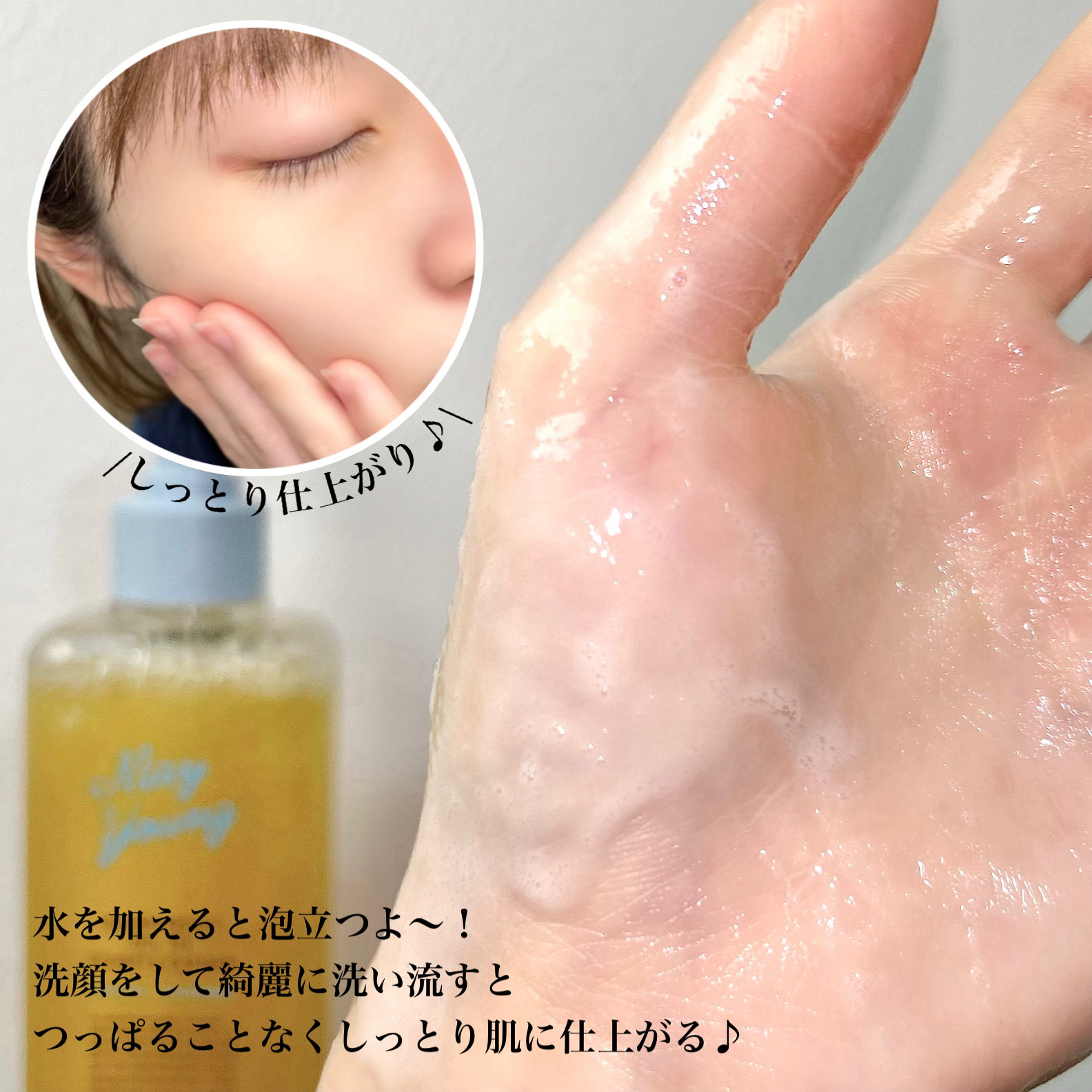 オイルがするするっとメイクをからみとって 水を加えるとフォームに変化するらしい☺︎ 夜はメイク落とし&洗顔に 朝はオイルに水を加えて泡立てた後 朝洗顔にも使えるよ♪ ブラックヘッドや微細なほこりも しっかり絡め取ってくれてるクレンジング✨