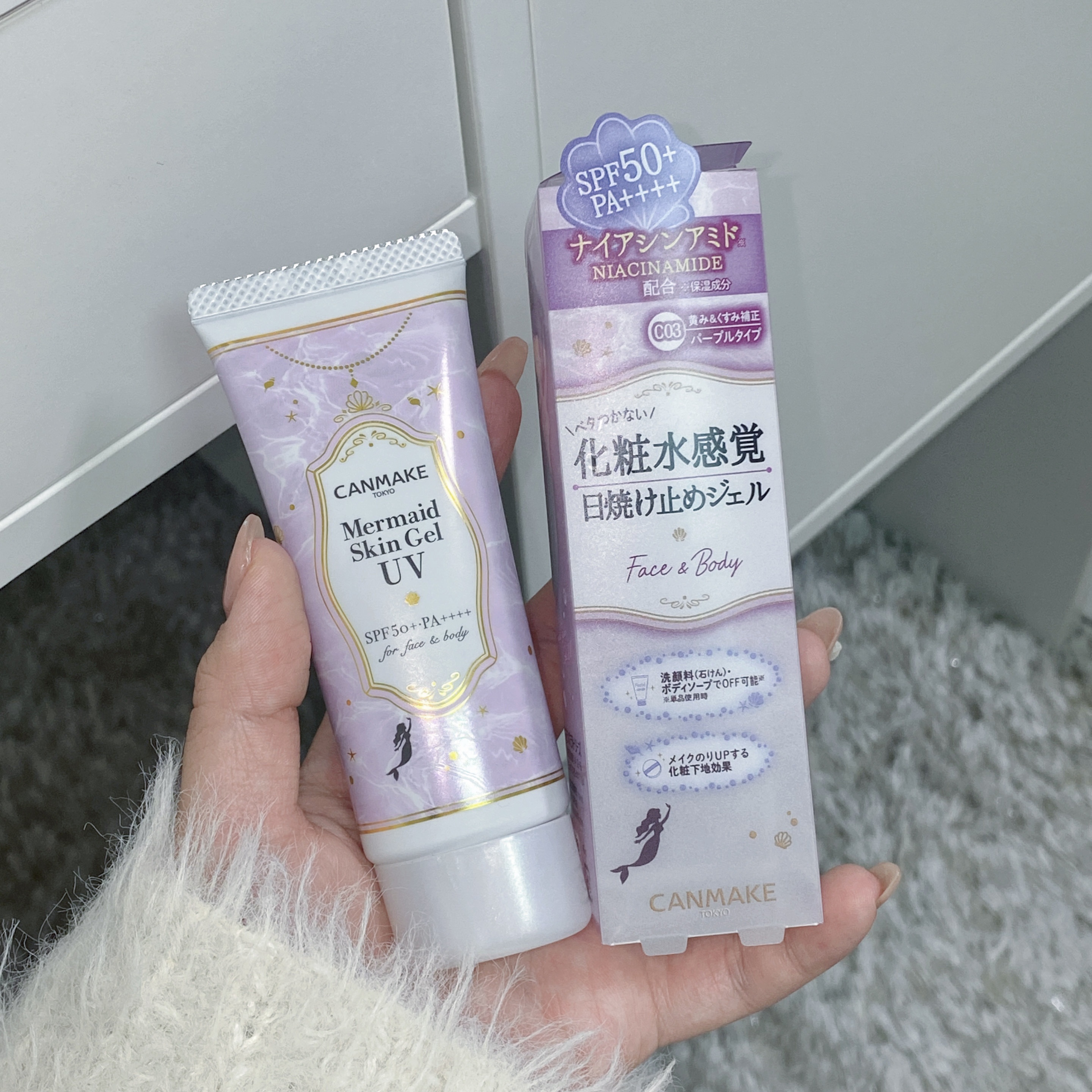 《キャンメイクマーメイドスキンジェルUVC03ピュアパープル》¥770※だいぶ前に限定で発売されたカラーなので、今買えるかはちょっと分からないです💦超人気日焼け止め下地から黄みとくすみを飛ばして透明感を与えてくれるパープルカラーが出ました!💜...