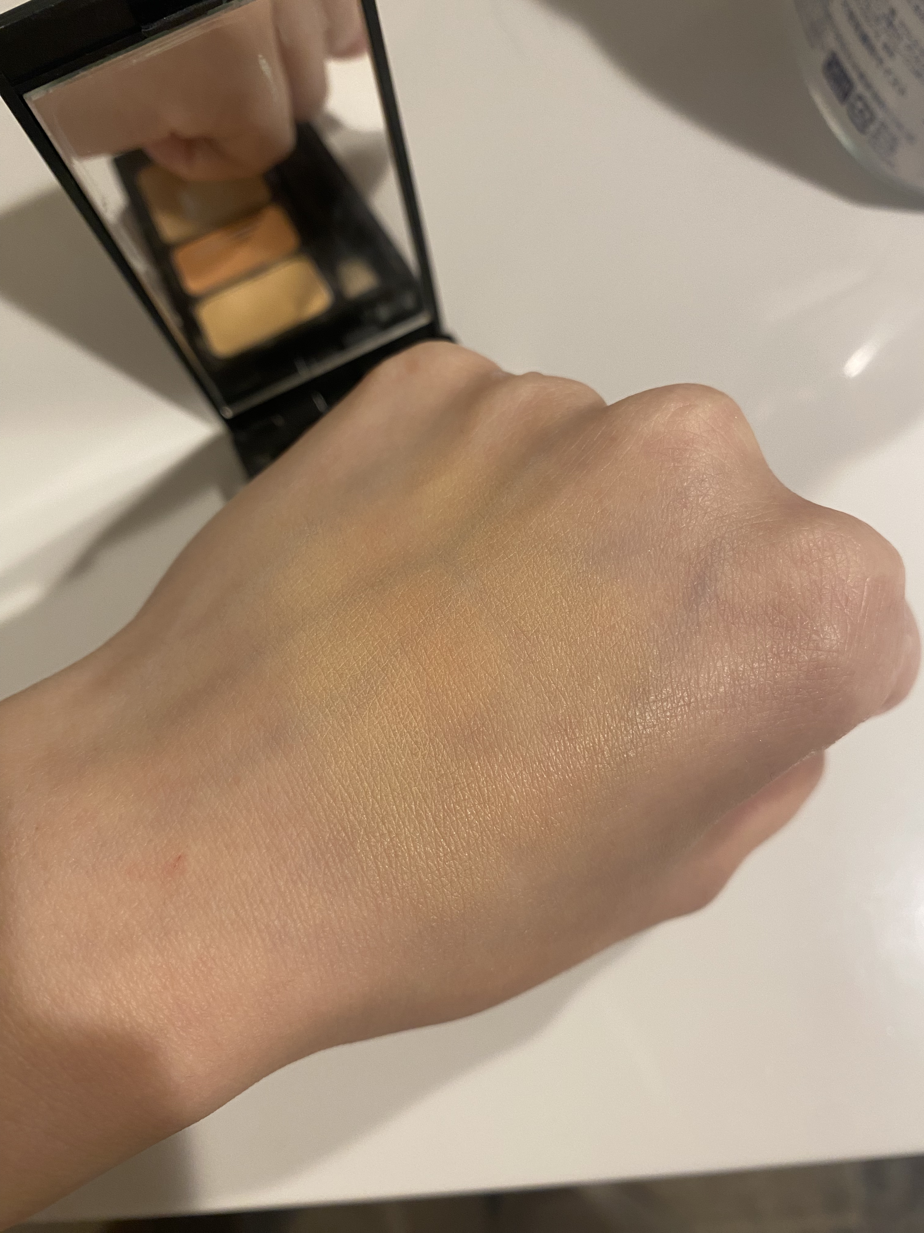 - SPF36 PA+++ シミやクマ、ニキビ跡など隠したいポイントに合わせて自由に色をカスタマイズ出来るコンシーラーパレット。 ナチュラル・オークル・オレンジを組み合わせることで、気になるポイントをより自然にカバー出来ます。 さらに、付属のブラシは筆とスポンジの2wayになっており、広範囲のクマには筆を、シミやニキビ跡などポイント部分にはスポンジと使い分けが可能。 3色×2wayブラシで自由自在に肌色補正が可能です。