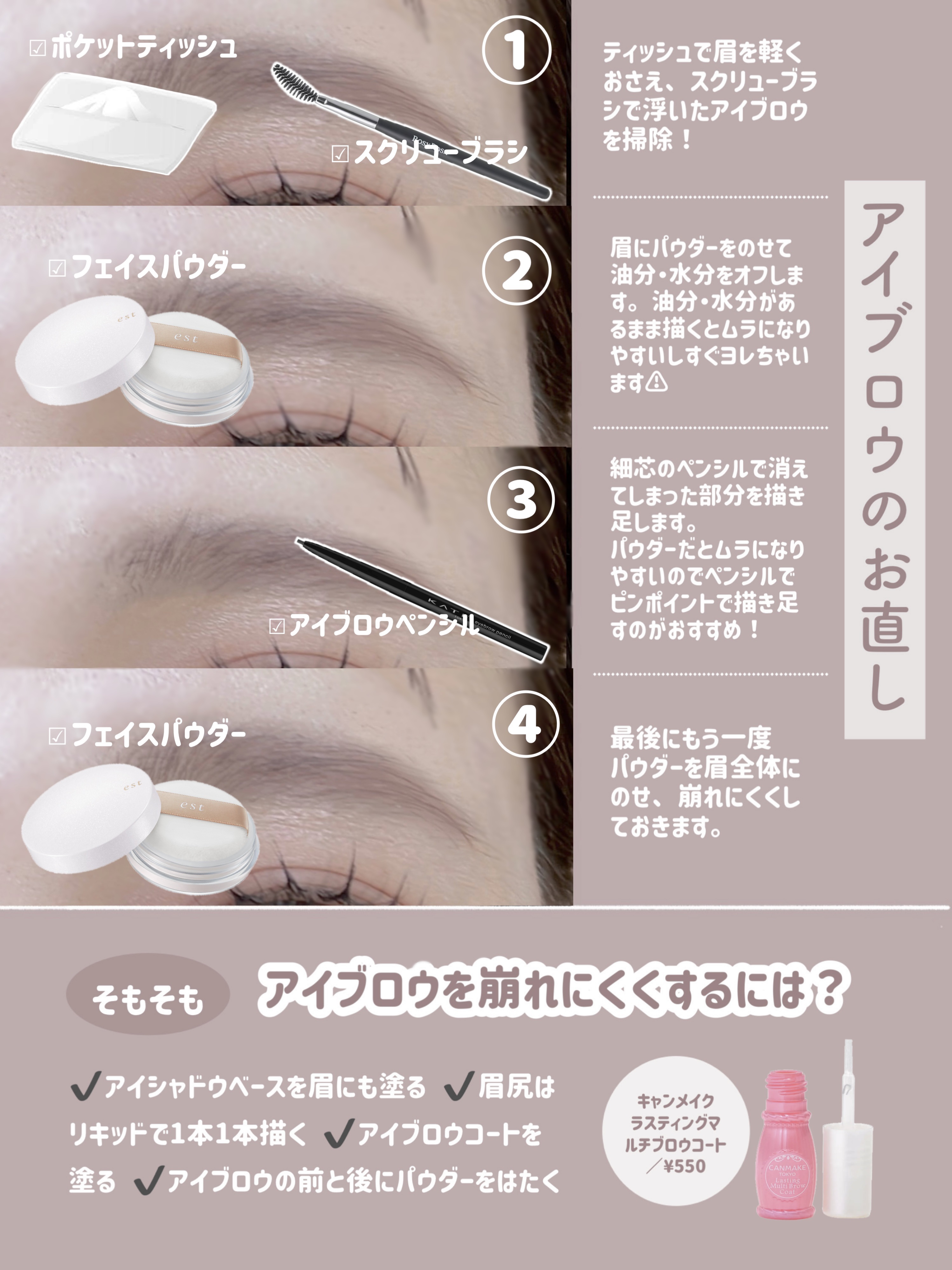 rom&nd ベターザンパレット 01PAMPAS GARDEN キャンメイク アイバッグコンシーラー 02ピンクベージュ CEZANNE ストレッチコンシーラー 30オレンジ系 これどんなに濃いクマも消える◎ やり方は画像を見てください🫶🏻 ラメを使わずに盛りたい時や、あざとく盛りたい時におすすめ!