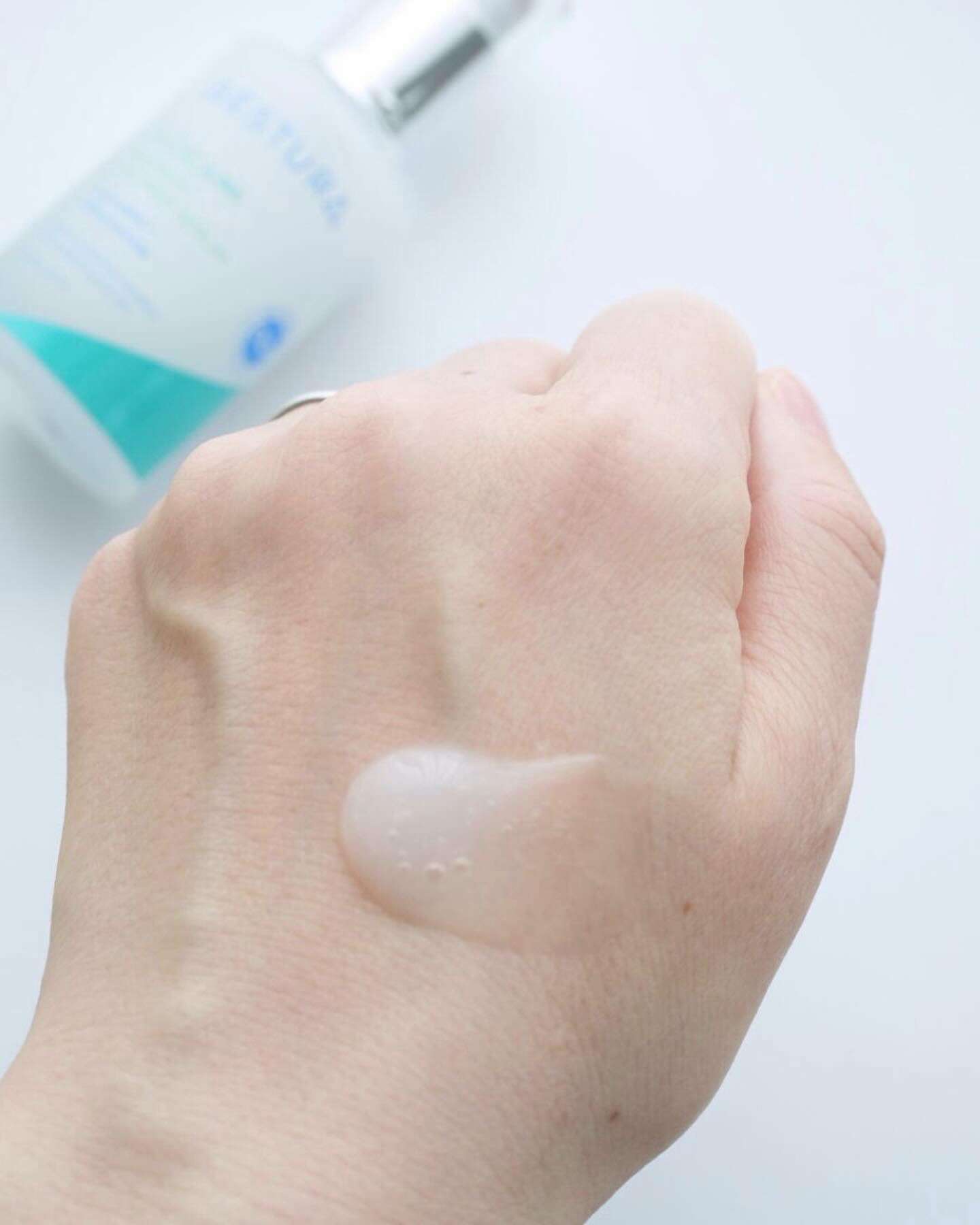 白くサラっと流れるようなテクスチャー 伸びやすく塗り心地もよい。スッと馴染んだらレチノール特有の香りやベタつきも少ない このセラム、めちゃくちゃ好きになりました。翌朝の肌がツルピカパン!これはリピ確定!