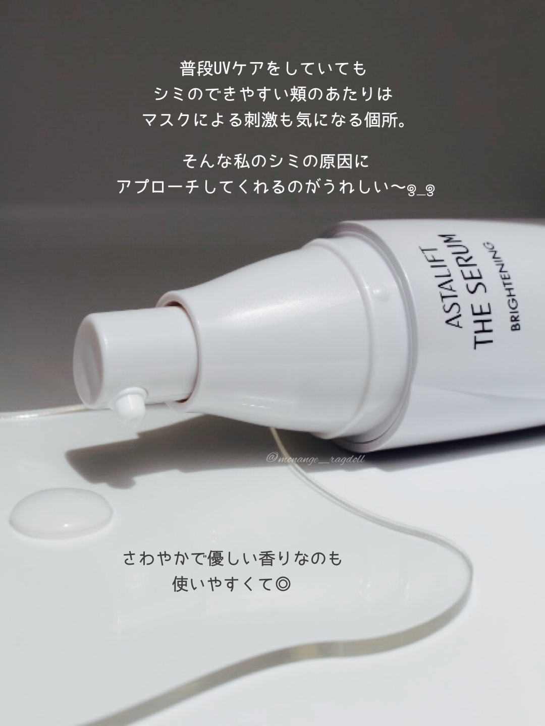 富士フイルムのリポソーム技術を採用した美白*美容液!◻️ASTALIFTザセラムブライトニング¥7,150(税込)紫外線以外にもマスクによる摩擦や乾燥、ニキビ、洗顔による摩擦やメイク落としによる摩擦など日常生活に潜む肌への刺激とシミの発生に着...