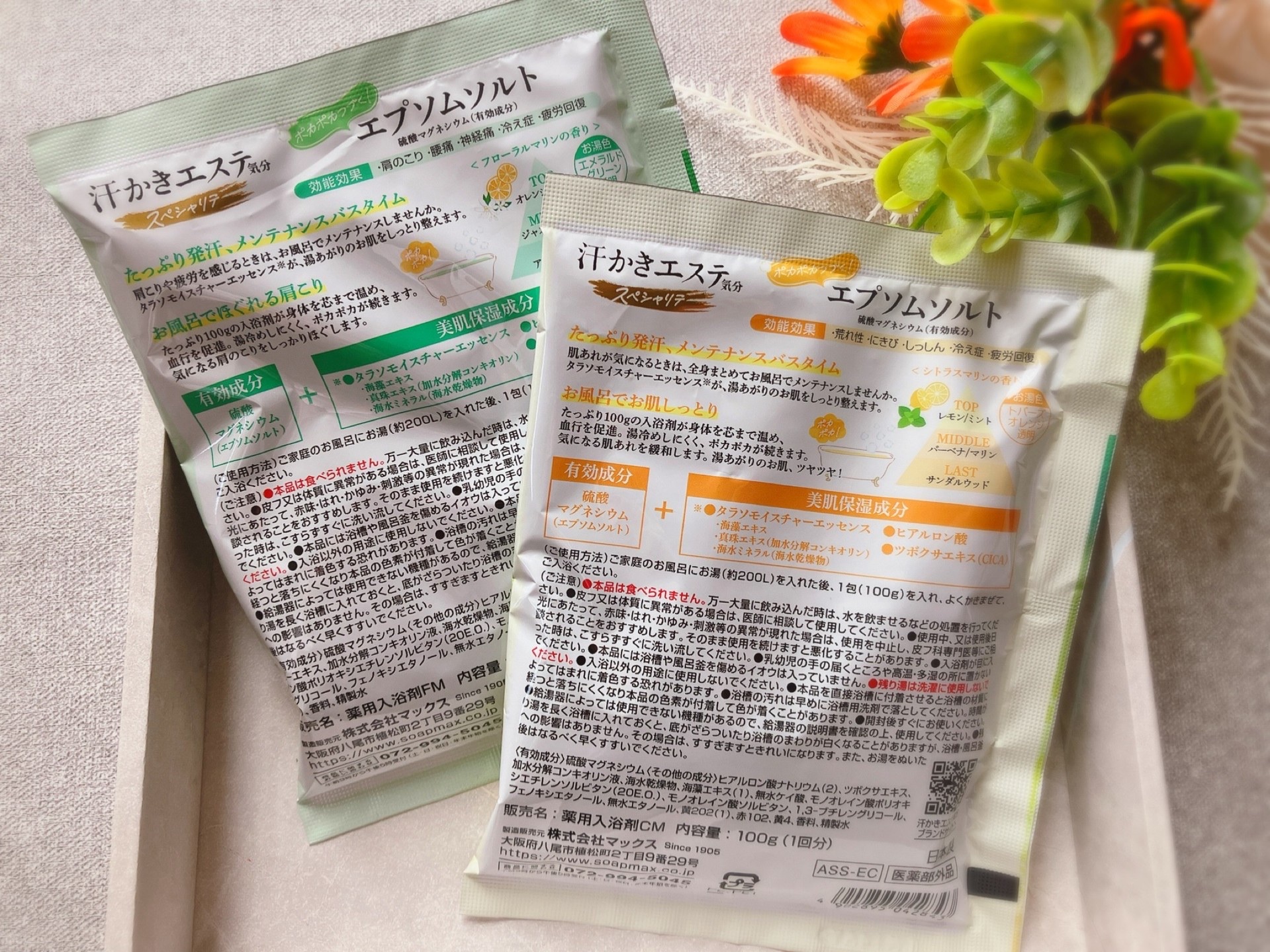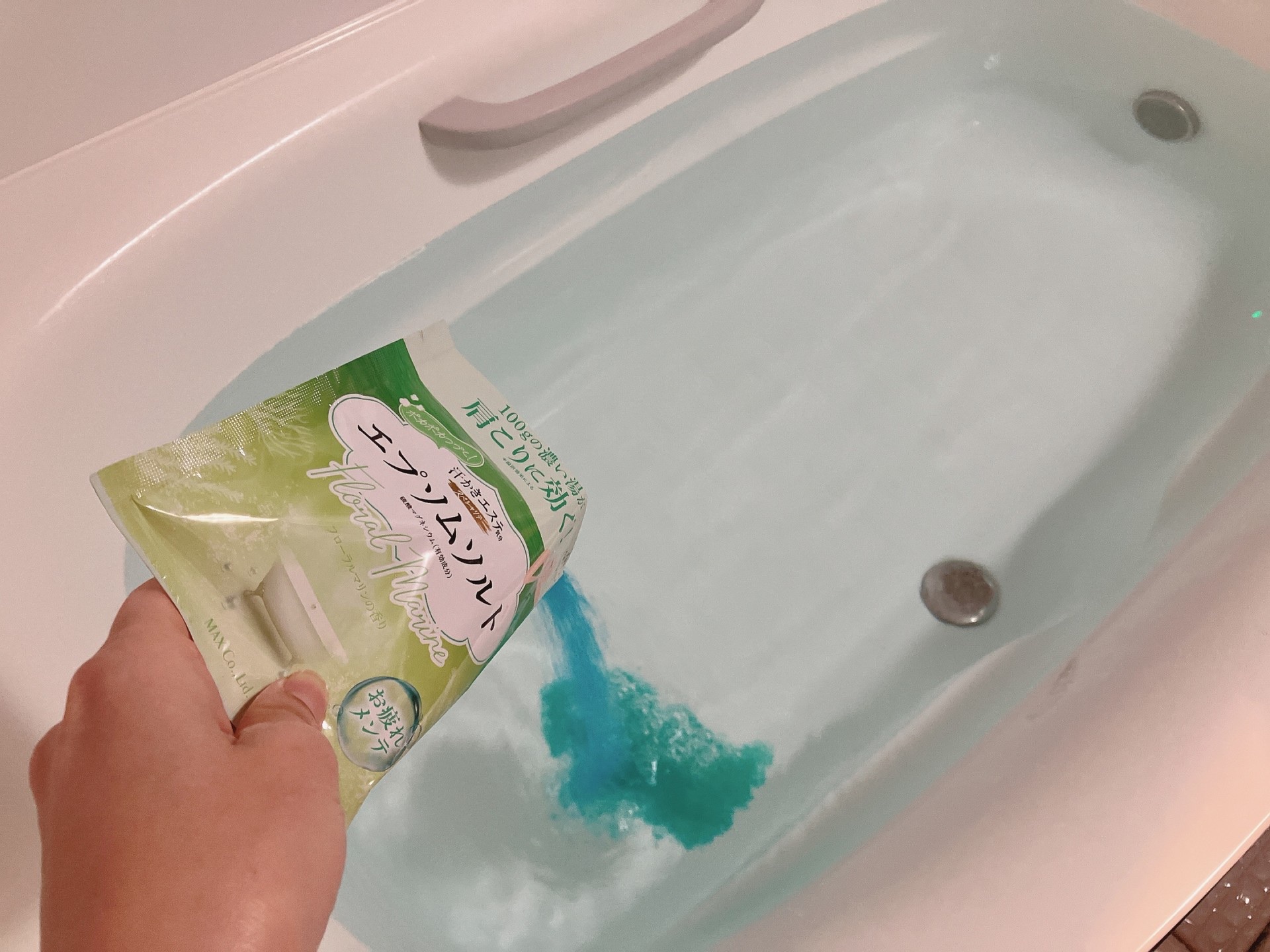 肌荒れ、肩こりに♡ 汗かきエステ気分 スペシャリテ エプソムソルト フローラルマリンの香りと、シトラスマリンの香りの2種類を使ってみました🛀🫧 開封してみると青いパウダーで、お湯に入れるとエメラルドグリーン(透明)になりました!キレイな色✨ 入浴剤って暫くすると香りが薄まるものが多いけど、これは香りが結構続くなーという印象👍