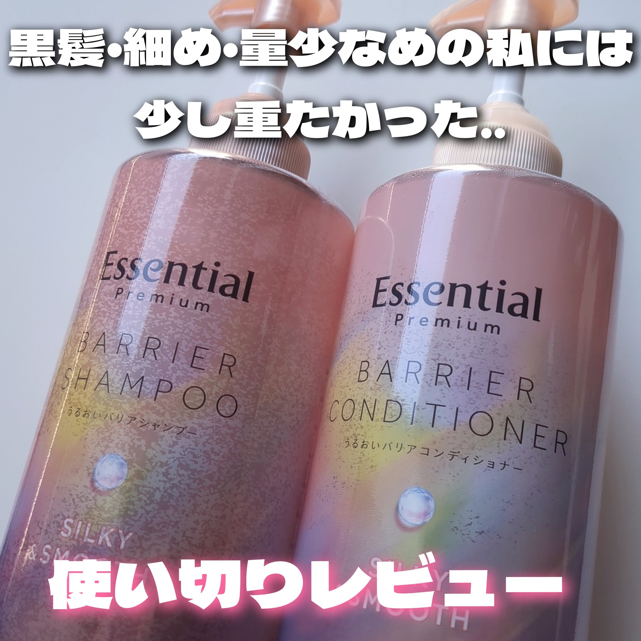 エッセンシャルさまからいただきましたエッセンシャルプレミアムうるおいバリアシャンプーうるおいバリアコンディショナーシルキー&スムースエッセンシャルプレミアムのシリーズシルキー&スムースのシャントリを試したよ♬私の髪の悩みは、・細い髪・すぐにパ...