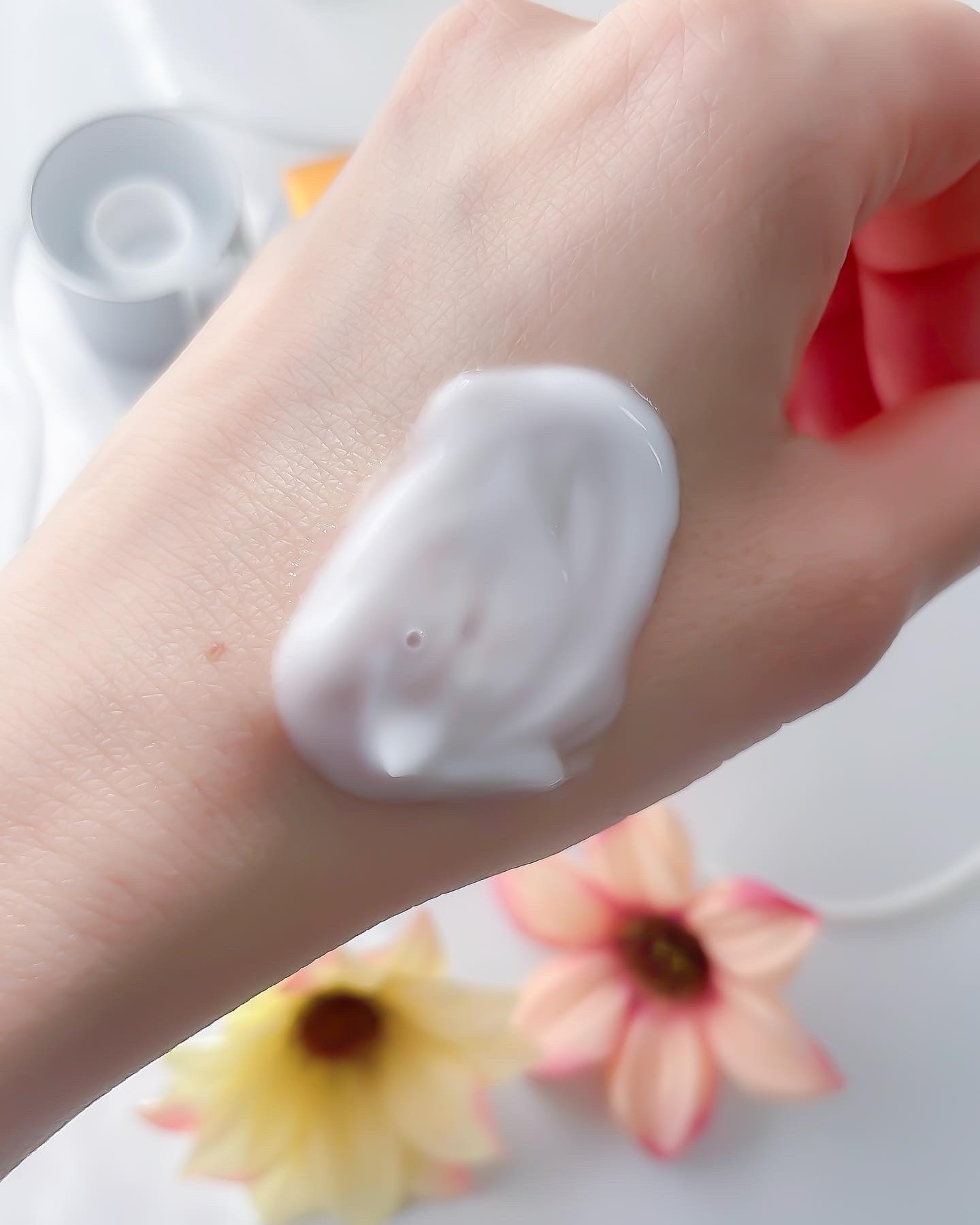 フリージアの香りと甘くみずみずしい梨の香りが作り上げる清楚なフローラルフレグランス 白色の伸びが良いクリームで軽いつけ心地、蓋を開けるとサンセットフリージアがふんわり香ります✨️ 普段は香水の匂いが強くて苦手でつけないから、ケアしながらパフューム効果もある製品は便利🌸