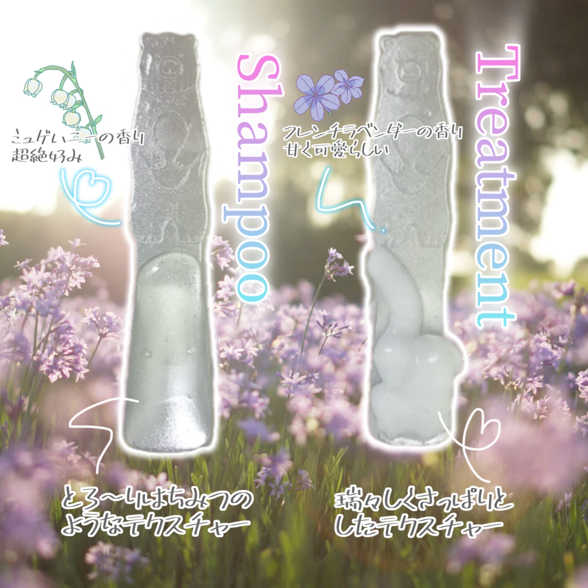 - <シャンプー本体440ml> 水、ラウラミドプロピルベタイン、ラウロイルメチルアラニンNa、オレフィン(C14-16)スルホン酸Na、コカミドプロピルベタイン、コカミドメチルMEA、ココイル加水分解ケラチンK(羊毛)、ハチミツ、ハチミツエキス、加水分解ハチミツタンパク、グルコノバクター/ハチミツ発酵液、プロポリスエキス、ローヤルゼリーエキス、加水分解ローヤルゼリーエキス、アルガニアスピノサ核油、レブリン酸、ケラチン(羊毛)、スズランエキス、加水分解シルク、ヒアルロン酸クロスポリマーNa、ヤシ油アルキルグルコシド、白金、ミリスチルベタイン、ココイルグルタミン酸TEA、ポリクオタニウム-10、ポリクオタニウム-47、EDTA-2Na、塩化Na、水酸化K、クエン酸、ペンテト酸5Na、グリセリン、酸化銀、リン酸Na、リン酸2Na、炭酸水素Na、フィチン酸、PPG-7、安息香酸Na、ペンチレングリコール、ヒドロキシアセトフェノン、BG、DPG、フェノキシエタノール、香料 <ヘアトリートメント本体445g> 水、ステアリルアルコール、セテアリルアルコール、ジメチコン、ベヘントリモニウムクロリド、グリセリン、ハチミツ、ハチミツエキス、加水分解ハチミツタンパク、グルコノバクター/ハチミツ発酵液、プロポリスエキス、ローヤルゼリーエキス、加水分解ローヤルゼリーエキス、アルガニアスピノサ核油、レブリン酸、ケラチン(羊毛)、ラベンダー花エキス、加水分解シルク、ゼイン、ヒアルロン酸クロスポリマーNa、ヤシ油アルキルグルコシド、ステアルトリモニウムクロリド、クエン酸、クエン酸Na、ステアリン酸エチルヘキシル、イソステアリン酸Na、(ジイソステアリン酸/ポリヒドロキシステアリン酸/セバシン酸)ポリグリセリル-4、パルミチン酸エチルヘキシル、アモジメチコン、イソプロパノール、EDTA-2Na、BG、DPG、フェノキシエタノール、香料 <シャンプー(つめかえ) 350ml> 水、ラウラミドプロピルベタイン、ラウロイルメチルアラニンNa、オレフィン(C14-16)スルホン酸Na、コカミドプロピルベタイン、コカミドメチルMEA、ココイル加水分解ケラチンK(羊毛)、ハチミツ、ハチミツエキス、加水分解ハチミツタンパク、グルコノバクター/ハチミツ発酵液、プロポリスエキス、ローヤルゼリーエキス、加水分解ローヤルゼリーエキス、アルガニアスピノサ核油、レブリン酸、ケラチン(羊毛)、スズランエキス、加水分解シルク、ヒアルロン酸クロスポリマーNa、ヤシ油アルキルグルコシド、白金、ミリスチルベタイン、ココイルグルタミン酸TEA、ポリクオタニウム-10、ポリクオタニウム-47、EDTA-2Na、塩化Na、水酸化K、クエン酸、ペンテト酸5Na、グリセリン、酸化銀、リン酸Na、リン酸2Na、炭酸水素Na、フィチン酸、PPG-7、安息香酸Na、ペンチレングリコール、ヒドロキシアセトフェノン、BG、DPG、フェノキシエタノール、香料 <ヘアトリートメント(つめかえ) 350g> 水、ステアリルアルコール、セテアリルアルコール、ジメチコン、ベヘントリモニウムクロリド、グリセリン、ハチミツ、ハチミツエキス、加水分解ハチミツタンパク、グルコノバクター/ハチミツ発酵液、プロポリスエキス、ローヤルゼリーエキス、加水分解ローヤルゼリーエキス、アルガニアスピノサ核油、レブリン酸、ケラチン(羊毛)、ラベンダー花エキス、加水分解シルク、ゼイン、ヒアルロン酸クロスポリマーNa、ヤシ油アルキルグルコシド、ステアルトリモニウムクロリド、クエン酸、クエン酸Na、ステアリン酸エチルヘキシル、イソステアリン酸Na、(ジイソステアリン酸/ポリヒドロキシステアリン酸/セバシン酸)ポリグリセリル-4、パルミチン酸エチルヘキシル、アモジメチコン、イソプロパノール、EDTA-2Na、BG、DPG、フェノキシエタノール、香料
