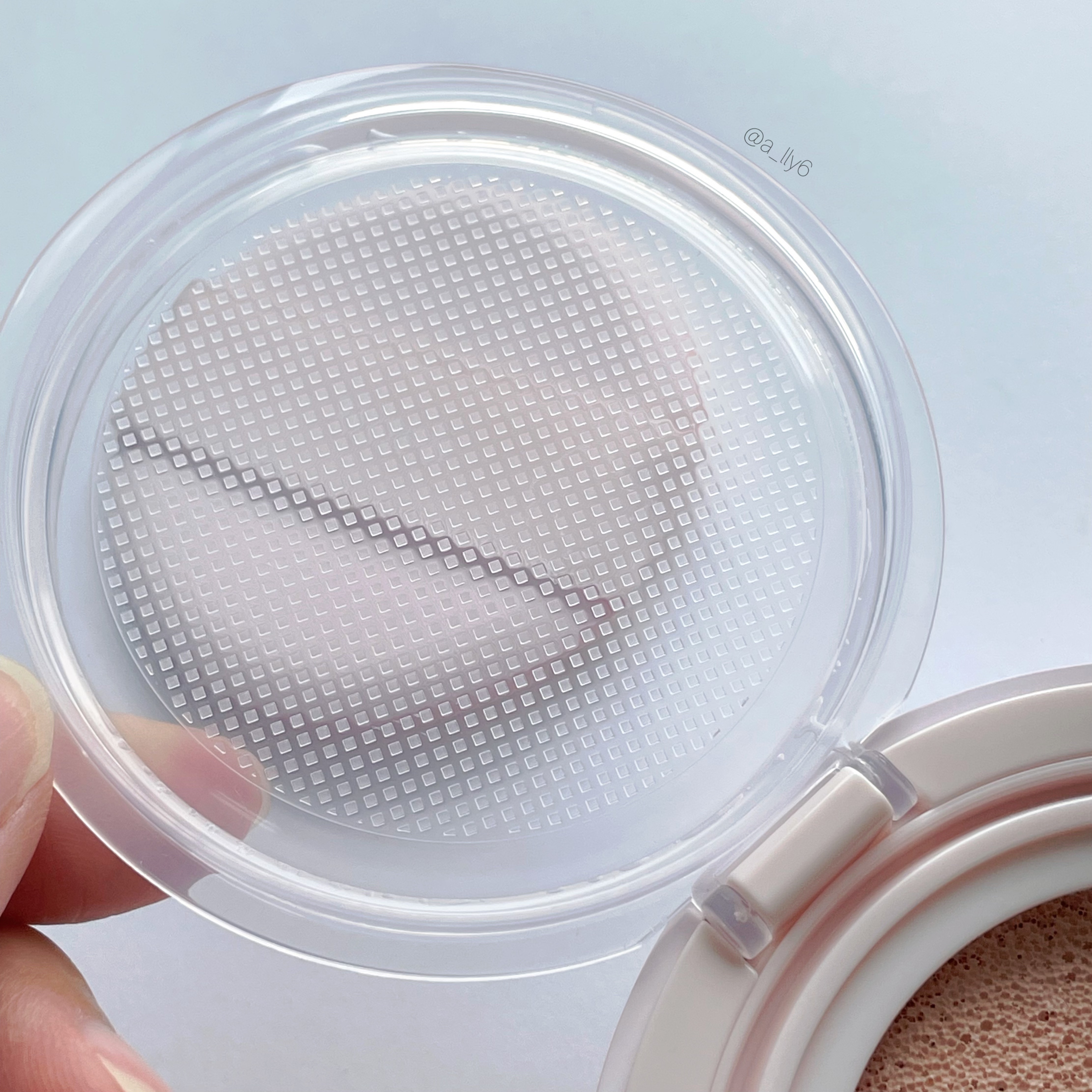 クッションタイプのコントロールカラー! 少しグレーみがかった紫色で一般的なファンデやコンシーラーに使われる黄色の色素を1滴も使ってないの😳 ぼやーっとした黄くすみを厚塗り感なくカバー、透き通るような透明感を演出できちゃうの🦋🤍 トーンアップ効果もかなり高くて◎ ややマットな仕上がりで、少し乾燥を感じるから色がつかない保湿系の下地を仕込むと崩れにくくていい🥹💗