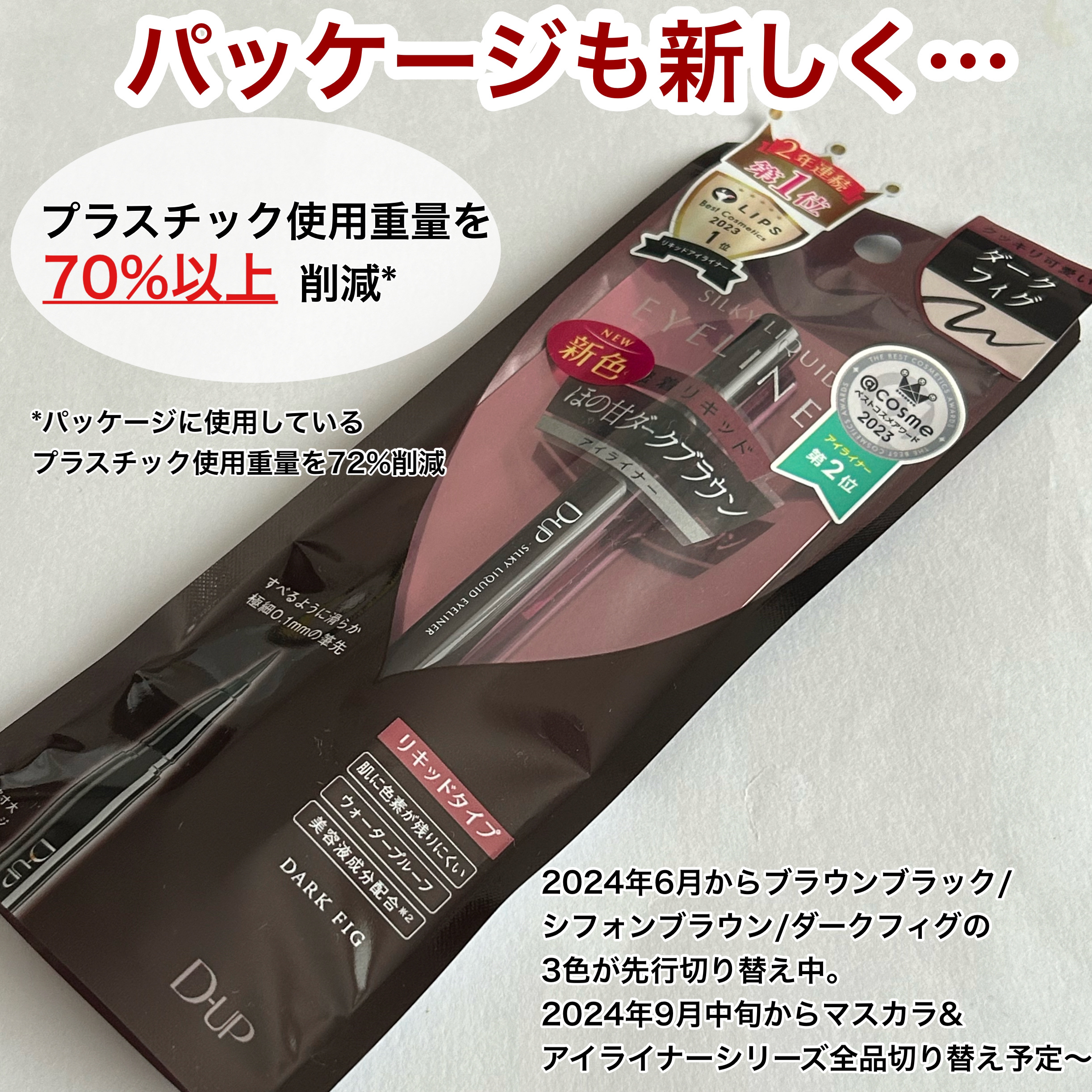 D-UPシルキーリキッドアイライナーWPダークフィグ定番のダークブラウンに温かな甘みをプラスした完熟いちじくブラウンカラー⸝⋆⸝⋆✓しなやかでコシのある極細0.1mmの筆先✓水・汗・皮脂に強いウォータープルーフ✓5種類の美容液成分(保湿成分)...