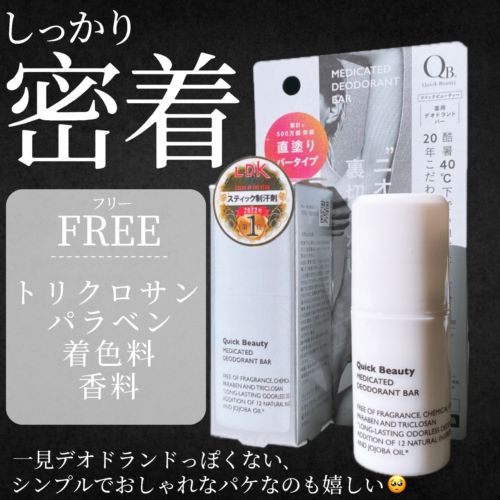 #PR#クイックビューティー@liberta_itemさまからいただきましたクイックビューティー薬用デオドラントバー表面サラサラ、ベタつき香り無くて◎夏本番はクセがないものが使いやすい🥹✨密着力が高く、汗・水・こすれ*に強く手を汚さず使えるス...