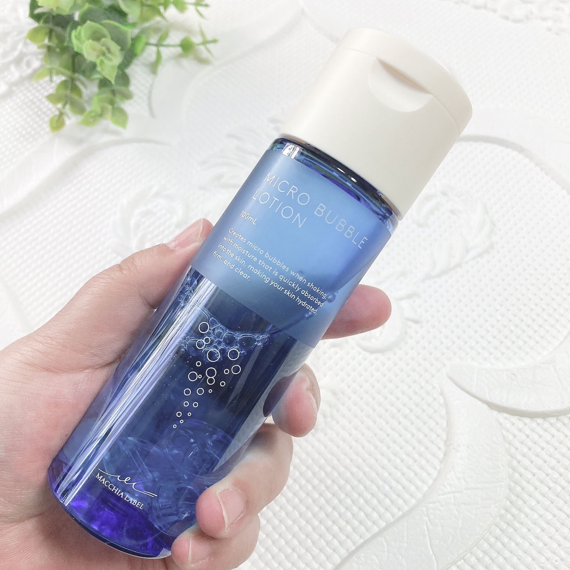 振ってファインバブルを発生させる攪拌ボール入りのボトルが印象的🫧 目に見えない程の微細泡で浸透力*UPも期待されてる🆙 ほんの少しトロミのあるテクスチャーで肌馴染みも良い◎