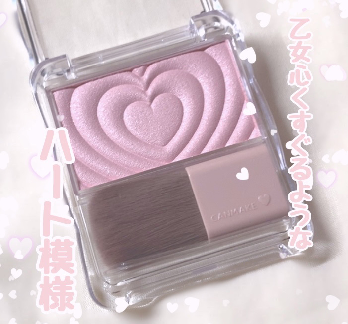 個人的にP03チアフルピーチは イエベの私大優勝カラーでした。 冗談抜きで毎日使います🫶🏻 P04はハイライトとしても使えるカラーでイエベブルベ問わず似合うと思います! なんとリニューアル商品らしくて今までは華やかな模様でしたが、激的可愛いハート模様になりブラシも毛量アップでふわっさふゎさです。