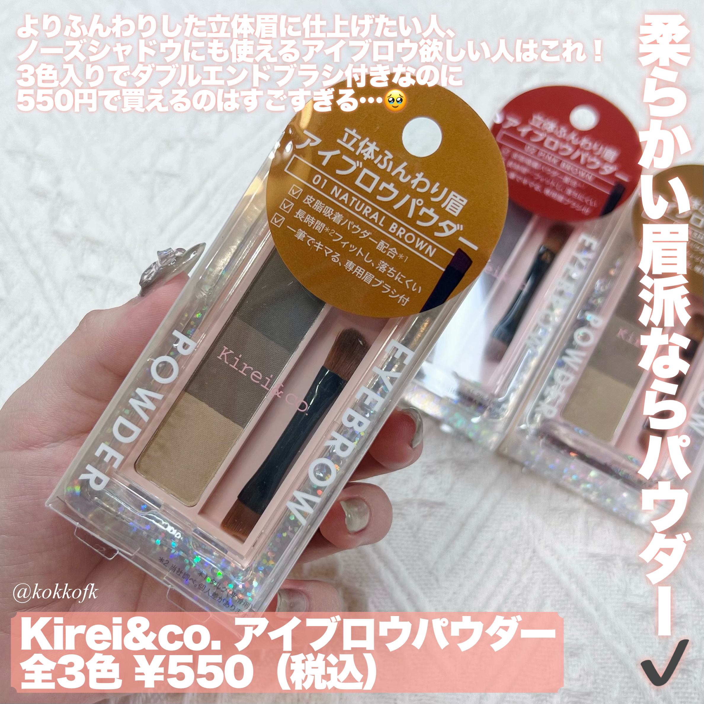 \¥550アイブロウパウダー/Kirei&co.アイブロウパウダー¥5503色入ってて、粉質がしっとりだから使いやすいです!🥹ブラシも入っててめちゃくちゃいい…🤭これはみんな使って欲しい!#Kirei&co.#キレイアンドコー#アイブロウパウ...
