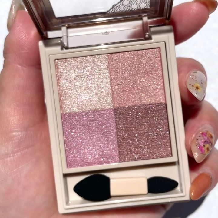 - ● しっとりほぐれるようなタッチで密着し、上品なツヤめきと透け感発色で目もとを彩る 4 色セットアイカラーです。 やさしいトーンの色味と繊細な輝きで、どこか儚げでアンニュイな印象に導きます。 ● レフ板のように光を美しく反射させるライトリフレクションパウダーを配合。 どの角度から見ても、繊細な輝きと濡れたようなツヤを演出します。 ● 透け感があり、軽いタッチでのび広がるクリアパウダーを配合。 色味を重ねても濁りのない透け感発色を叶えます。 ● とてもキメ細かなパウダーに厳選したオイルを組み合わせることで、しっとりなめらかなほぐれ感を実現。 薄膜にのび広がり、まぶたへ溶け込むように密着します。 ● スルスルとした軽い感触のオイルを配合。摩擦抵抗を減らすことで、まばたきや表情の変化によるヨレを防ぎます。 汗や皮脂にもくすみにくいため、時間が経ってもつけたての美しい発色が持続します。 ● まぶたに明るさをあたえ、後から重ねるアイカラーを美しく発色させる「スキンブライトカラー」(A)をセット。 光を味方につけてまぶたのくすみを飛ばし、明るくツヤめく目もとを叶えます。 ● 色ごとに仕切りがないため、1 色ずつはもちろん、パレット内で色を混ぜて塗布することもできます。 ● 美容液成分配合。乾燥しやすい目もとのうるおいをまもります。 ● 無香料