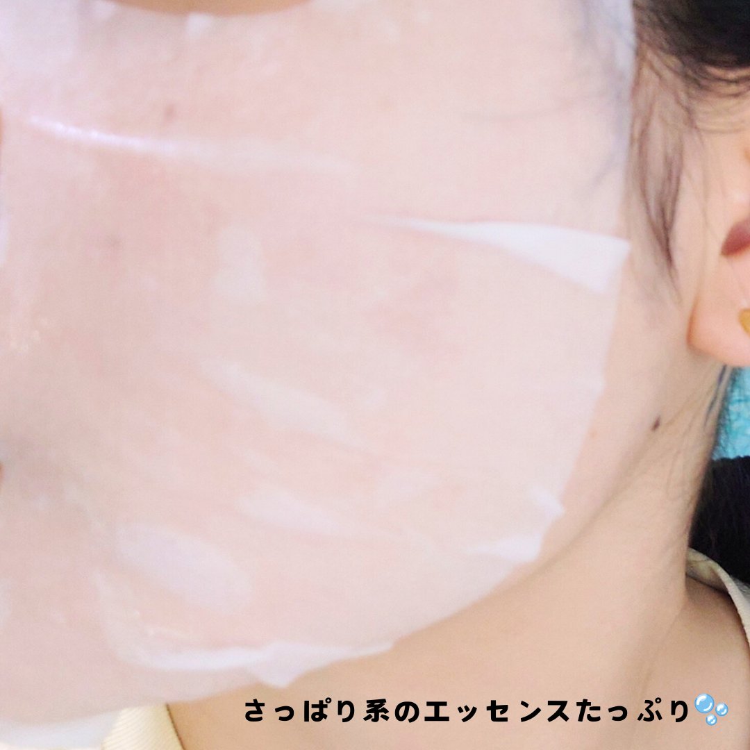 桜エキス、ハイドロイズドコラーゲン、藻類抽出物配合。 このパックはとろみはあるものの、サラッとしてベタつかなくてめちゃくちゃ使用感よかった!!次の日もモチモチ!! シートもしっかりとしててしっかりと人中覆ってくれる!! 液もたっぷり含んでで残りもかなりあったよ。