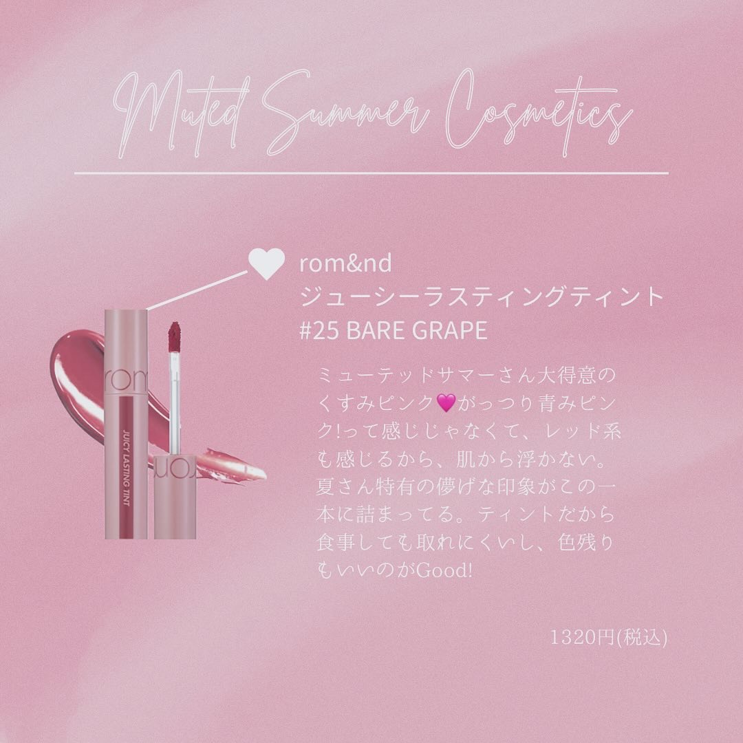 ブルベ夏の中でも、鮮やかなカラーが似合う人・白っぽい明るいカラーが似合う人・すこしグレーがかったくすみカラーが似合う人、などにも分けられるんです!! 大体リップに当てられているカラー名で「フィグ」「モーヴ」「ローズ」「ピンクベージュ」っていう名前が入ってると似合うことが多い気がする…🤔笑 くすみカラーに挑戦したい方はぜひ参考にしてみてください♡