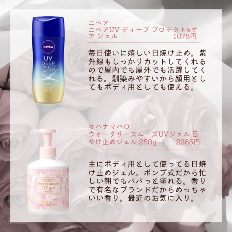 OHANAMAHAALOSkinsmoothingUVspray85gSPF50+PA++++フレッシュなお花の香りがするUVスプレー。顔や体は勿論、髪にも使えるので紫外線対策万全に出来ます。髪は意外と紫外線でダメージを受けているそうで、私の...