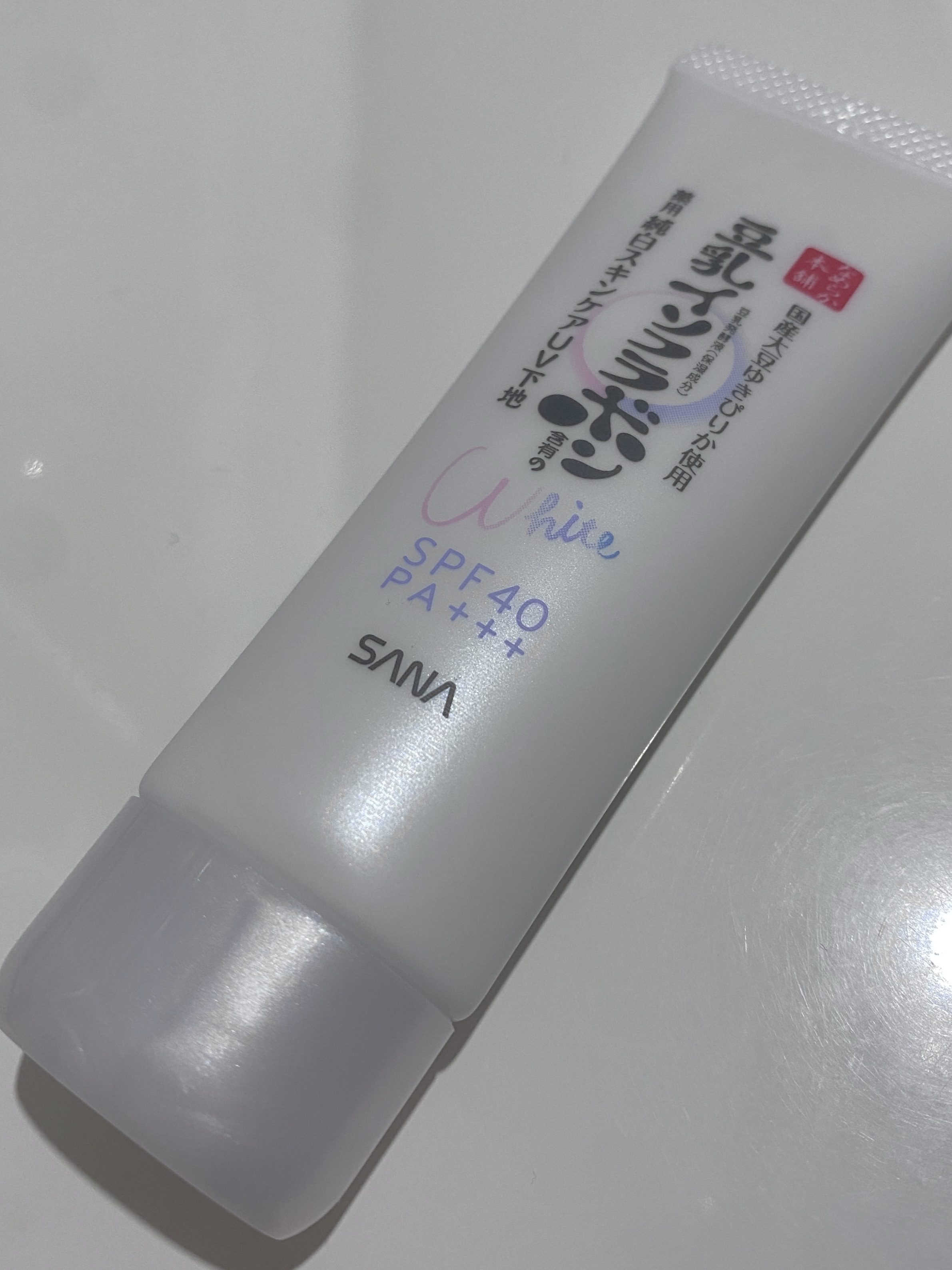 - <薬用美白スキンケアUV下地> 豆乳の美白スキンケアUV下地。肌荒れ&ニキビ予防しながら美白!メラニンの生成を抑え、シミ・そばかすを防ぎます。トーンアップ(メイク効果による)&皮脂崩れ防止。化粧水・美容液・乳液・クリーム・UVカット・化粧下地の1本6役。SPF40・PA+++。[販売名:サナ なめらか本舗 薬用美白スキンケアUV下地]