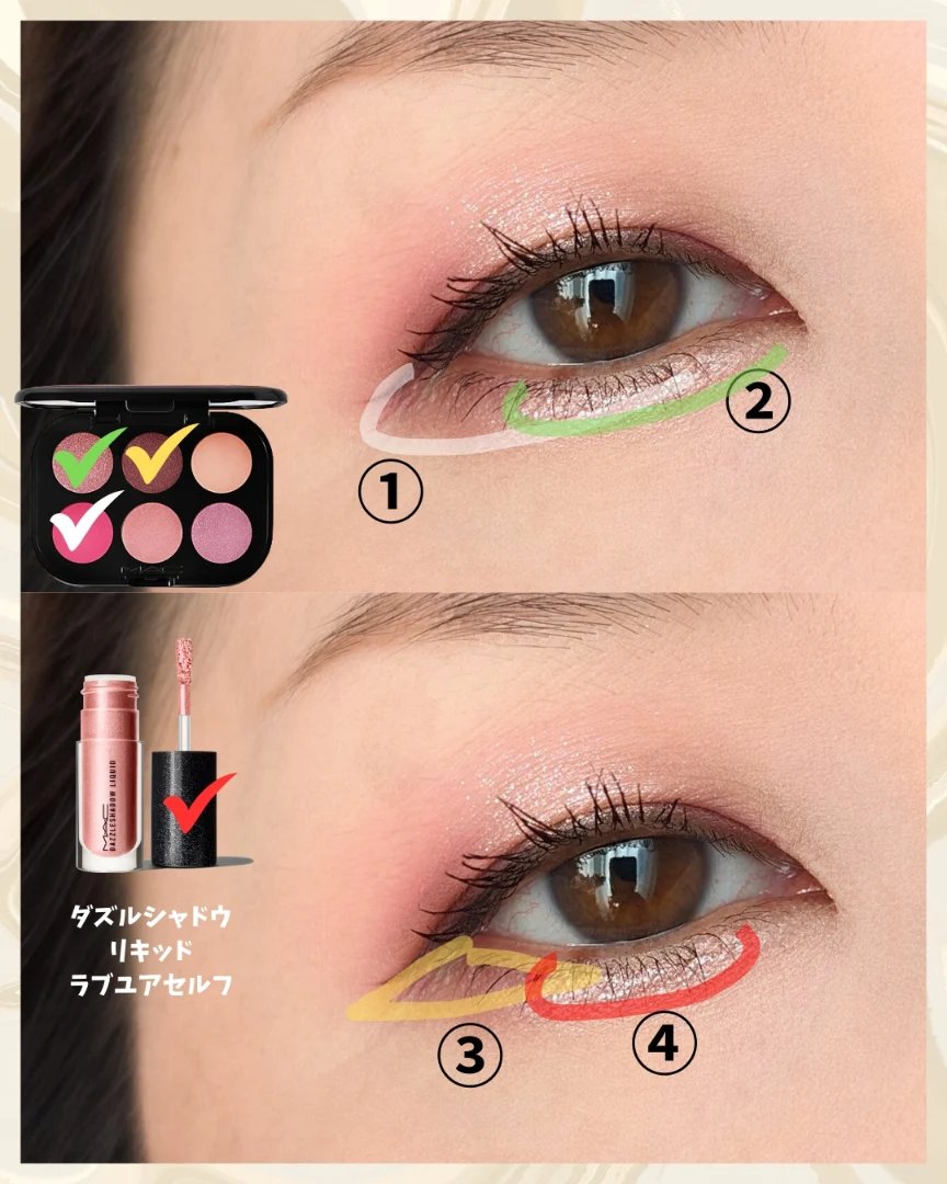 M・A・Cコネクトインカラー【ローズレンズ】🥀を使ったナチュラルカットクリース🥰💕カットクリースといえば、囲み目や太めのライン、つけまつ毛…みたいなゴリゴリ強めなイメージがあるけどローズピンクを使ったナチュラルめ(?)なカットクリースにしてみ...