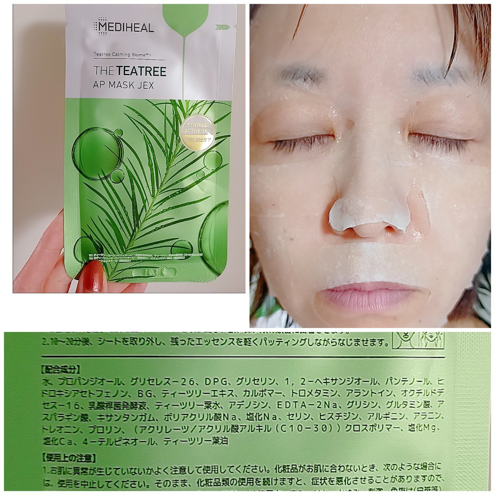 MEDIHEAL THEティーツリーAPマスクJEX 27ml×3枚✿肌荒れ防止ケア✿高密着シート✿浸透力UPティーツリーカーミングバイオーム·ティーツリー葉油·4-テルピネオールがお肌を保護してくれます✨️薄くて美容成分がひったひったとしっ...