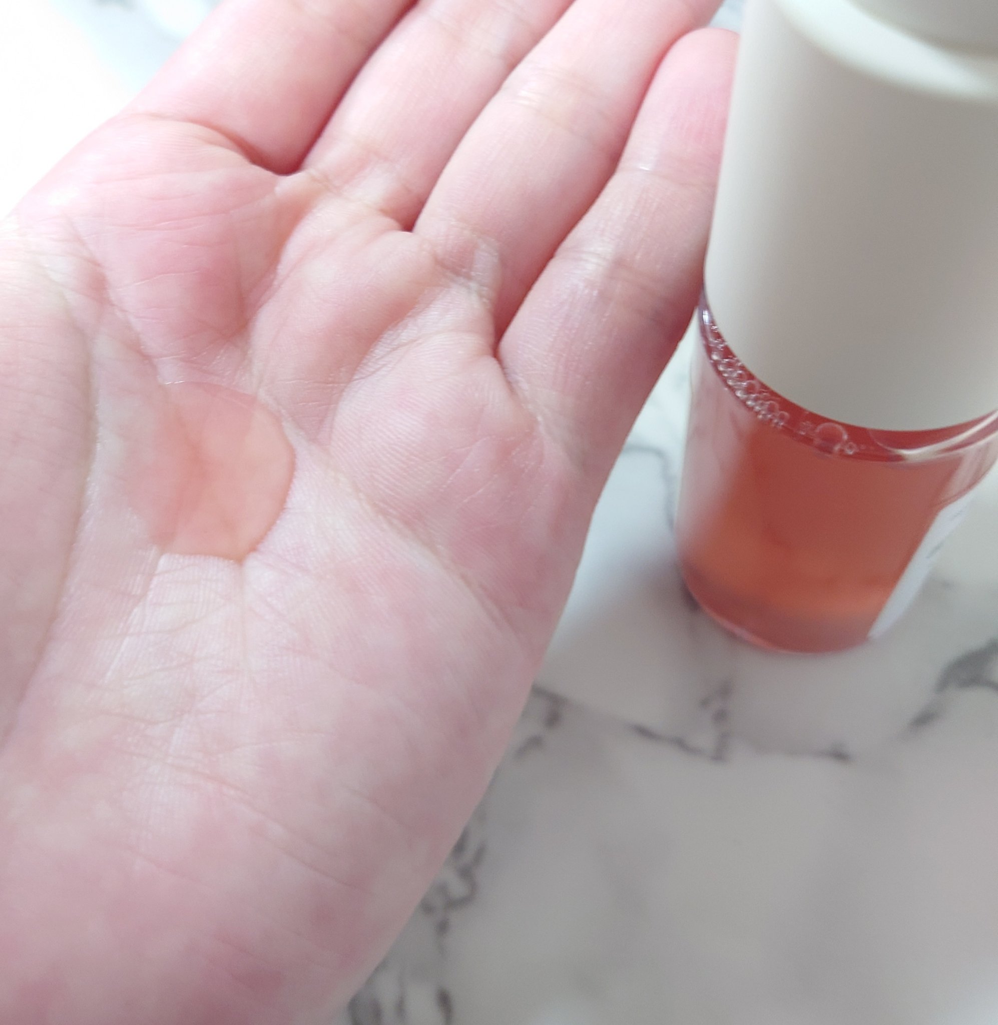 とろみのあるテクスチャのセラムで、みずみずしく肌馴染み◎ コンブチャ発酵物配合で水分を肌に長時間維持してくれるとのことで、 過度なべた付きや重さはないものの、もちっと水分を保ってくれている感覚があります。 香りは甘酸っぱくて少しスパイシーなみずみずしい果実っぽい香りがします。