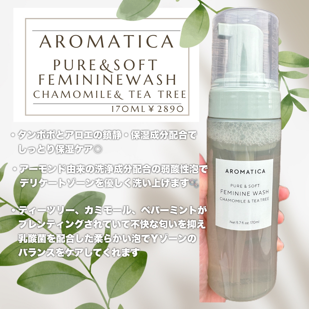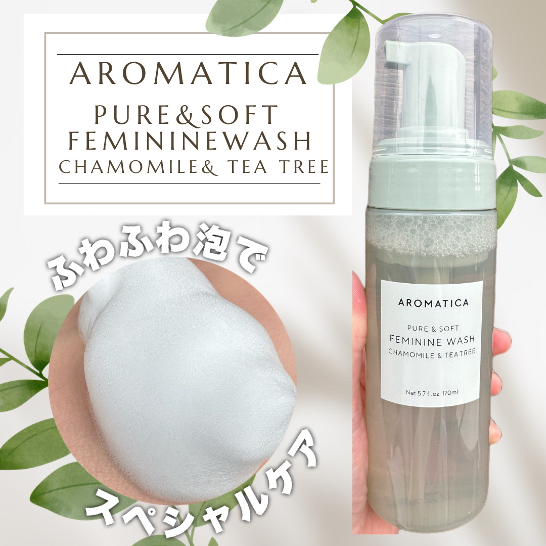 AROMATICA✔︎フェミニンウォッシュピュア&ソフト✔︎フェミニンウォッシュカモミール&ティーツリーお洒落な見た目でバスルームに置いても気分が上がるフェミニンウォッシュ🌿ワンプッシュでふわふわの泡が出てくるから、デリケートゾーンケア...
