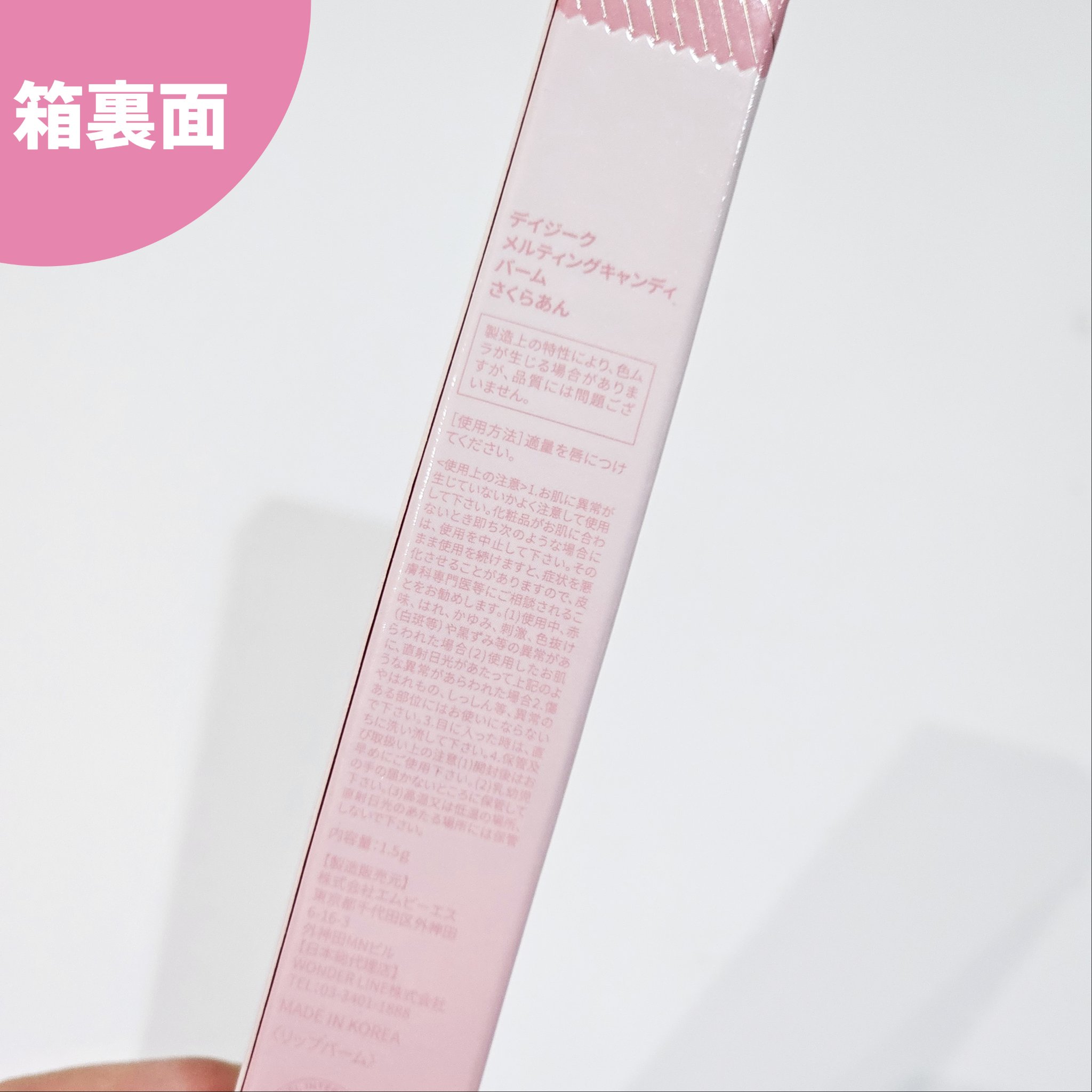 ちゅるんとあめ玉のような光沢感! むちっとした厚みのある唇に仕上がる♡ さくらあんは桜の餡のように甘いミルキーピンク。 ピュアな感じで可愛いの! 唇にのせるとバームがとろけてむちっとしたテクスチャーに。 スティックが細いから唇の山や口角も塗りやすいの。