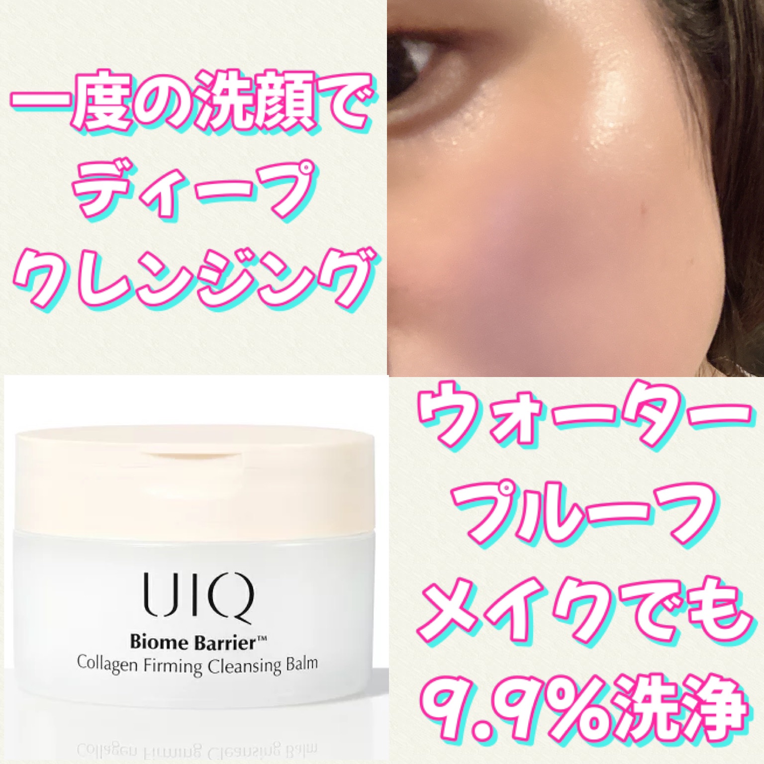 手の温度でスルッととろける UIQ🤍バイオームバリアコラーゲンファーミングクレンジングバーム 柔らかくてなめらかやからお肌に摩擦をほとんど与えずにメイクを落とせるよ! ウォータープルーフメイクも落ちる👍🏻 ブラックヘッド/ホワイトヘッド/角栓ケアもできるから毛穴が気になる人にもおすすめ!