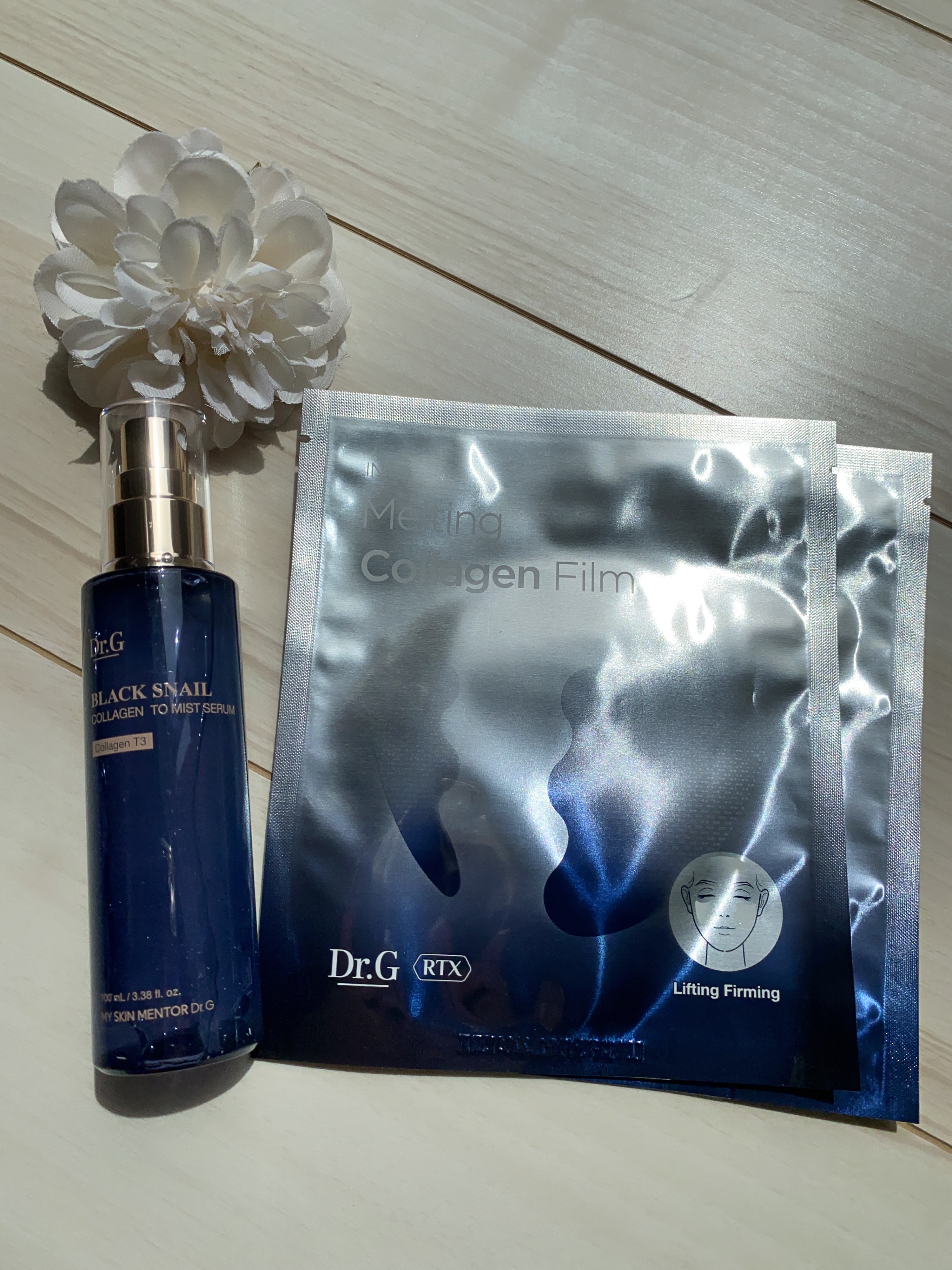 RTXイントゥメルティングコラーゲンフィルムは直接お肌に貼ることでコラーゲンが溶け込むの♡ 洗顔後の保湿したお肌にシートを乗せて、セラムミストを吹きかけるとスーっと溶け込んでいくのが新感覚♪ ブラックスネイルコラーゲントゥーミストセラムはとろっとしたセラムなんだけどシュッとするとミストで出てくるから不思議✨