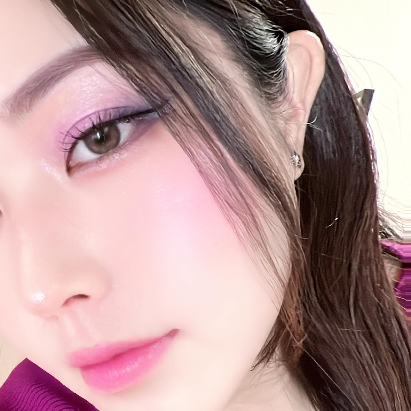 ベースに右上、目頭から黒目上に真ん中、黒目〜目尻に右下を、左上を目頭にくの字に塗ってもらいました✨ ピンクサクラよりもクールな感じで、目で見た色より私の肌では紫っぽく発色しました😍 上2つはラメはぎっしりでときめく💓 ブラウンメイクがとても苦手だけれどこれならブラウンメイク出来そう👌(かなり紫寄りですが) くすみ感は強いので苦手な方は厳しいかも…(特に真ん中) クールな印象になるので大人顔さん向けor大人顔になりたい方向けのイメージです✨