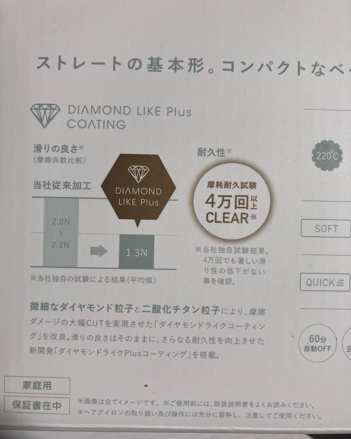 こちらはモイスティックプレートとというプレートを搭載しているので摩擦ダメージには良いとのこと◎ 温度は140℃〜20℃ずつ上がってMAXは220℃です! あまり温度は上げたくなかったですが180℃にしたら髪がまとまる時間が早くなりました◎ 耐熱カバーが付いていて持ち運びや熱を冷ます時間が無い時にも◎ 旅行にも持っていきましたがサイズも大きすぎ無いのが◎