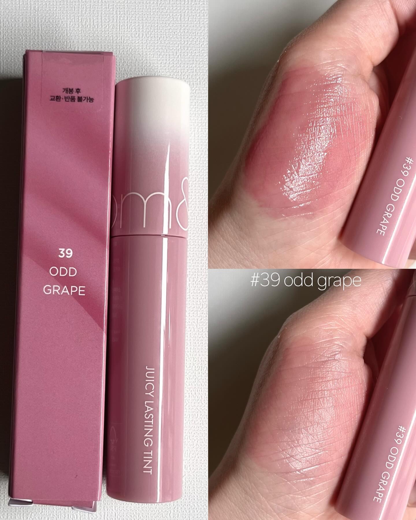 《rom&nd》ジューシーラスティングティント/39ODDGRAPE🍇𝐏𝐨𝐢𝐧𝐭🍇 ̄ ̄ ̄ ̄ ̄ ̄✔️ロムアンドが提案するフレンチコアシリーズ✔️ホワイトを一滴加えたレイジーベージュカラー✔️塗り重ねる程柔らかに深みの増す発色✔️39は爽やかなブ...