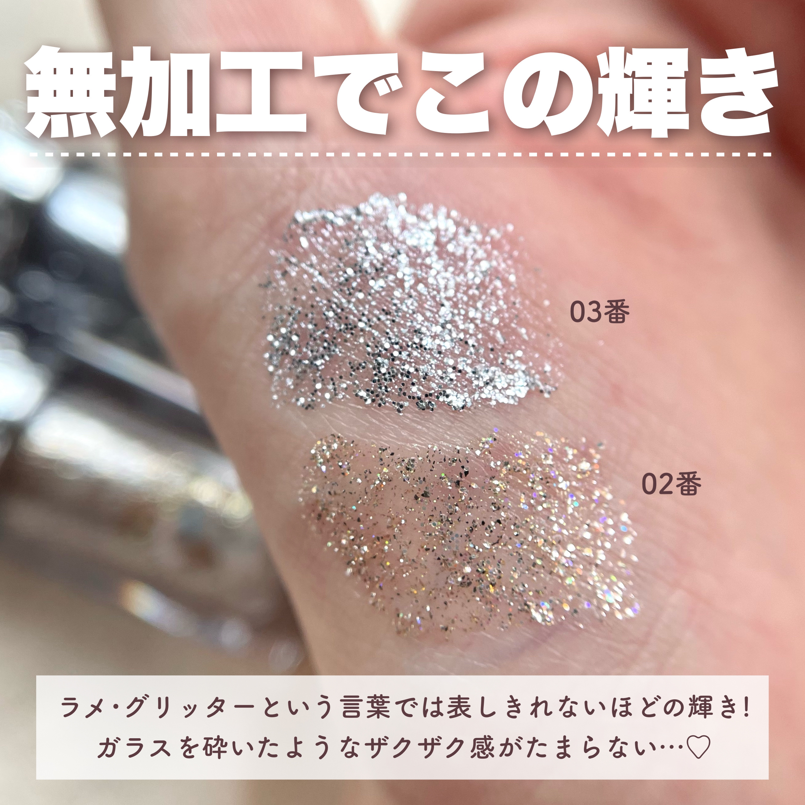★グリッター比較★cipicipiグリッターイルミネーションライナー041540円rom&ndリキッドグリッターシャドウ011100円※色番号によって、ラメのサイズ感や色味の違いがあります。📝ロムアンドについて・小さくて持ち運び◎・筆は硬め▶...