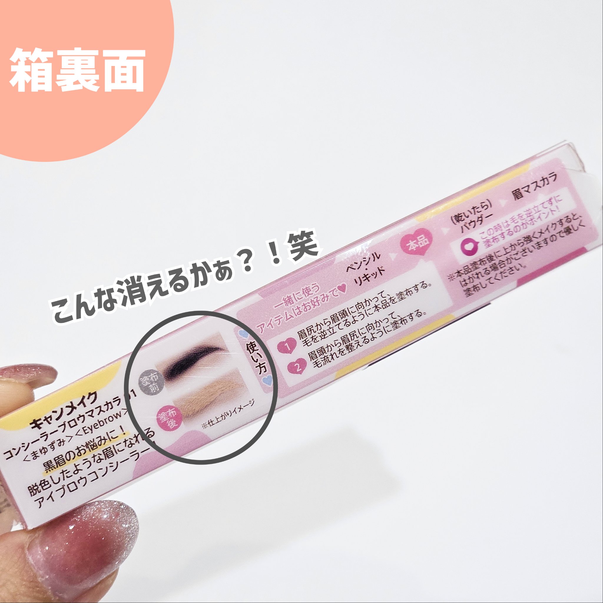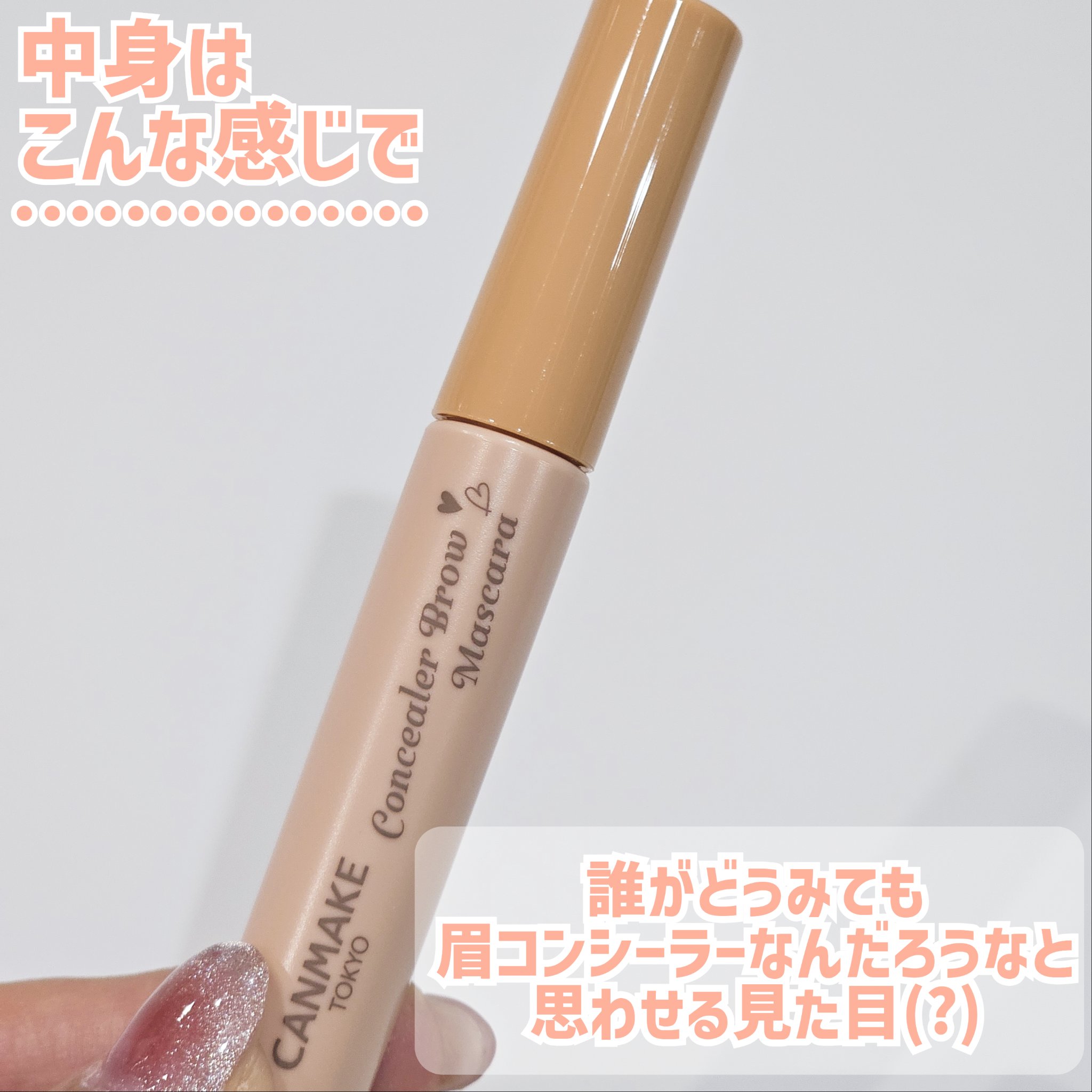 - 2024年4月以降順次定番化! まるでブリーチしたような薄眉に✨ 濃い⿊眉を隠すアイブロウコンシーラー♪ 新提案!これ⼀本で脱⾊⾵の眉になれる、眉⽤コンシーラーです。 本品で⾃眉の⾊を消すことで、上に乗せるアイブロウアイテムの⾊味が キレイに発⾊します✨ 「濃い⿊眉のせいでイマイチ垢抜けない」 「眉の存在感を抑えたいけど眉ブリーチはしたくない」 そんな⽅にオススメ! ⼩回りの利くミニブラシがとっても塗りやすく、 ペタつかないふんわり仕上がり♪♪ 肌から浮かない絶妙なベージュカラーです! 《コンシーラーブロウマスカラの使い方》 ①眉尻から眉頭に向かって毛を逆立てるように塗布する ②眉頭から眉尻に向かって毛流れを整えるように塗布する 《一緒に使うアイブロウアイテムはお好みで!》 ペンシル・リキッド→コンシーラーブロウマスカラ→(乾いたら)パウダー→眉マスカラ ★眉マスカラを塗る場合は毛を逆立てずに塗るのがポイント ※コンシーラーブロウマスカラ塗布後に上から強くメイクすると、はがれる場合がございますので 優しく塗布してください